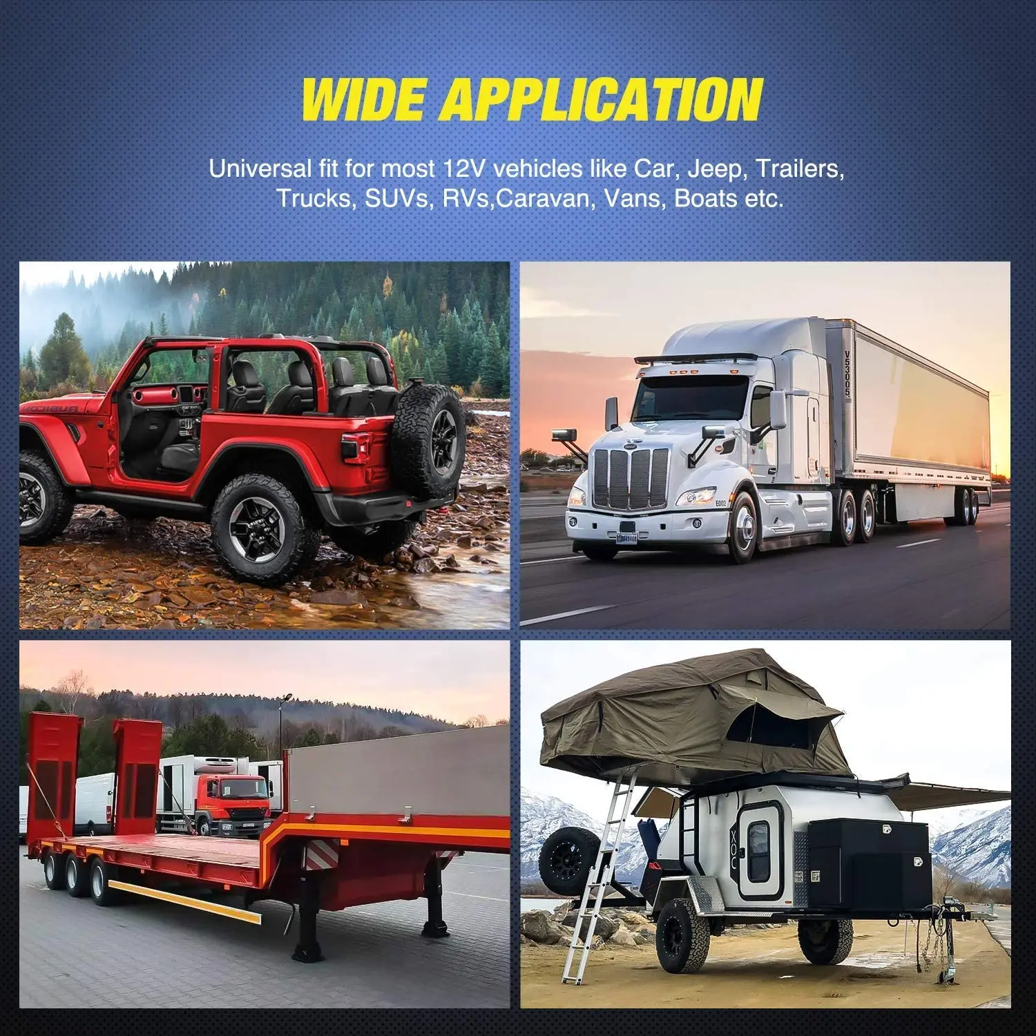 | Montage | Compatible avec les modèles Jeep Wrangler JK entre 1997 et 2016. Convient également aux véhicules 12V tels que les camions, les remorques, les bateaux, les bus, les fourgons, etc. Le montage pour les modèles Jeep YJ JK Wrangler, Jeep CJ CJ-7 peut nécessiter des modifications. |