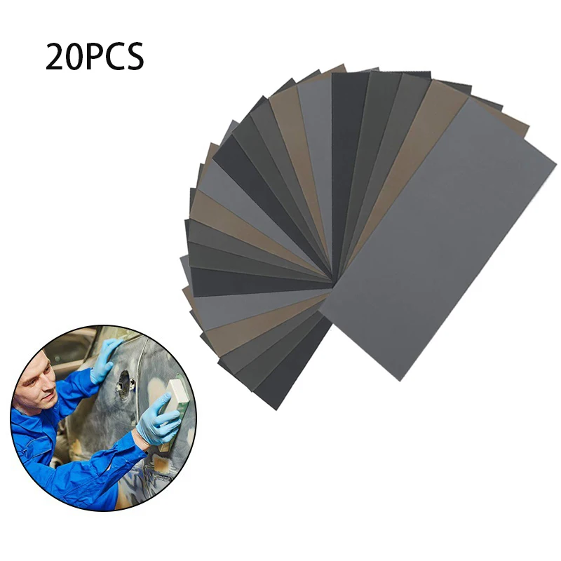 Nous proposons 20 feuilles de papier de verre assorties, 4 feuilles de chaque grain: 1000/2000/3000/5000/7000.
