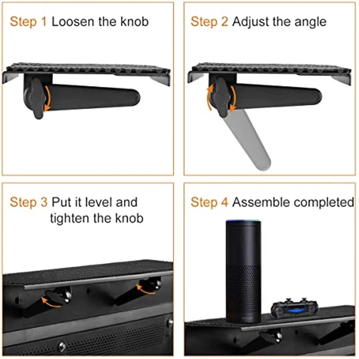 Avec cette étagère supérieure, vous pouvez placer des accessoires tels que des télécommandes, des routeurs, des calculatrices, de petites décorations, etc. sur votre ordinateur ou votre téléviseur. Cela vous permet de garder une apparence ordonnée et d’avoir une expérience d’environnement confortable.