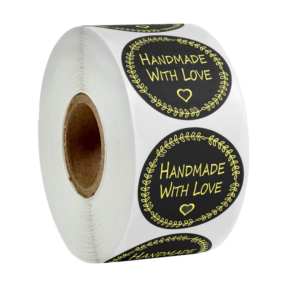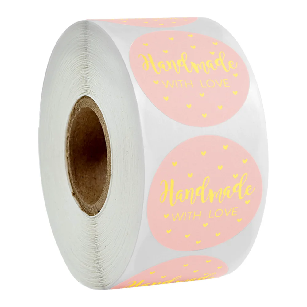 Voici les points clés à retenir du produit « Étiquettes adhésives rondes roses faites à la main avec amour, 1 pouce, 500 pièces/rouleau, décoration de pâtisserie et de mariage, emballage cadeau » :
