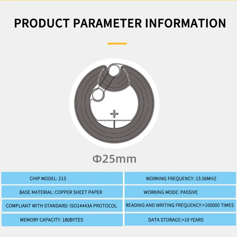 Les étiquettes NFC NFC213 permettent une distance de lecture et d’écriture de 1 à 5 cm.