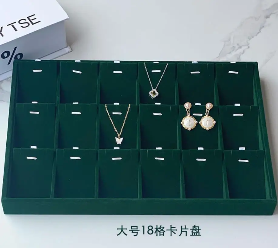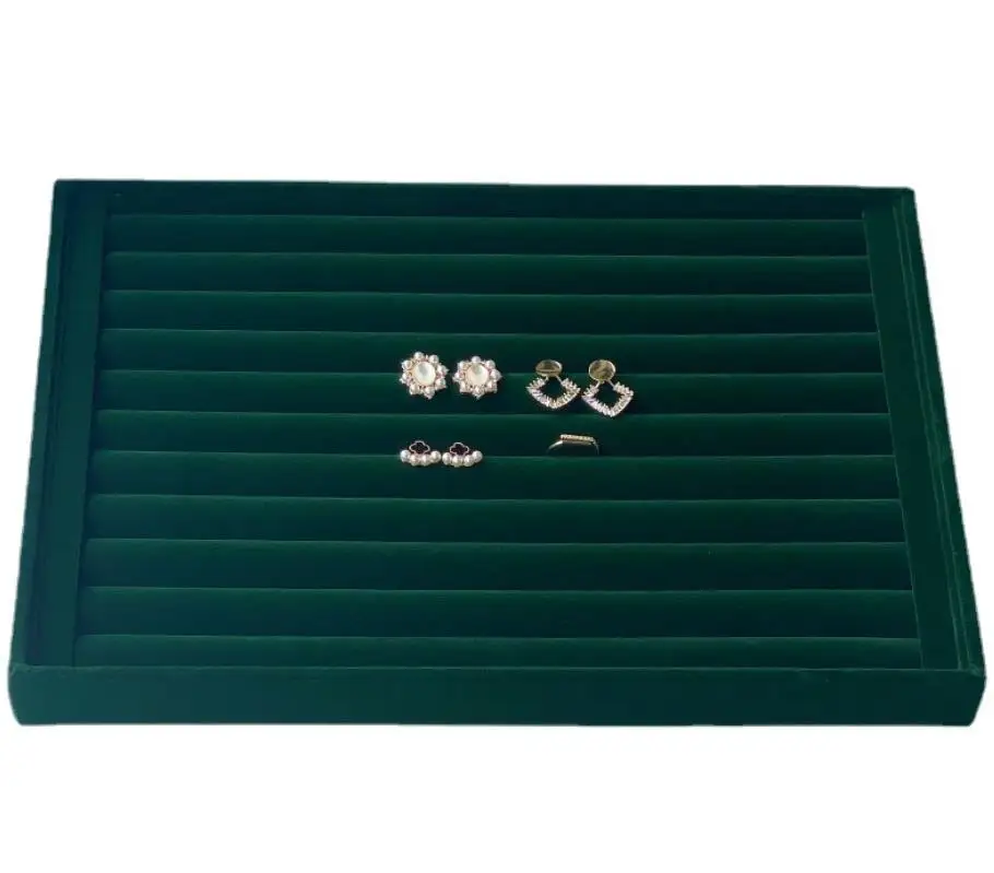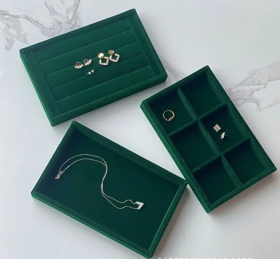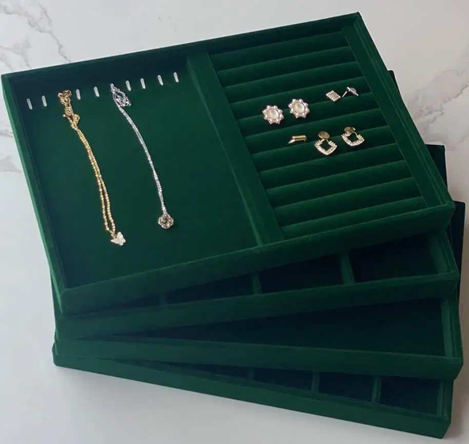 | Grande taille: 35*24*3cm/13.8*9.4*1.2 pouces Taille moyenne: 28*20*3cm/11*7.8*1.2 pouces Petite taille: 22.5*14.5*2.8cm/8.9*5.7*1.1 pouces | Vert | 1 pièce de plateau à bijoux (bijoux non inclus) | Fabriqué en velours de haute qualité, avec une atmosphère haut de gamme; il est agréable au toucher et a l’air élégant. Nos artisans traditionnels sont stricts avec tous les détails de nos produits | Un crochet séparé stocke facilement vos bijoux. Le plateau de présentation de bijoux peut garder votre collier séparé afin qu’ils ne s’emmêlent pas ou ne fassent pas de petits nœuds. Vous pouvez rapidement trouver vos bijoux et faire un bon match le matin. | Idéal pour un usage personnel à la maison, qui peut être empilé sur votre tiroir ou votre commode pour économiser de l’espace et pour accueillir votre collection croissante; et parfait pour un affichage de bijoux de comptoir dans les magasins ou les salons professionnels. Déplacez facilement le plateau de la vitrine pour permettre aux clients de voir vos bijoux depuis le comptoir |
