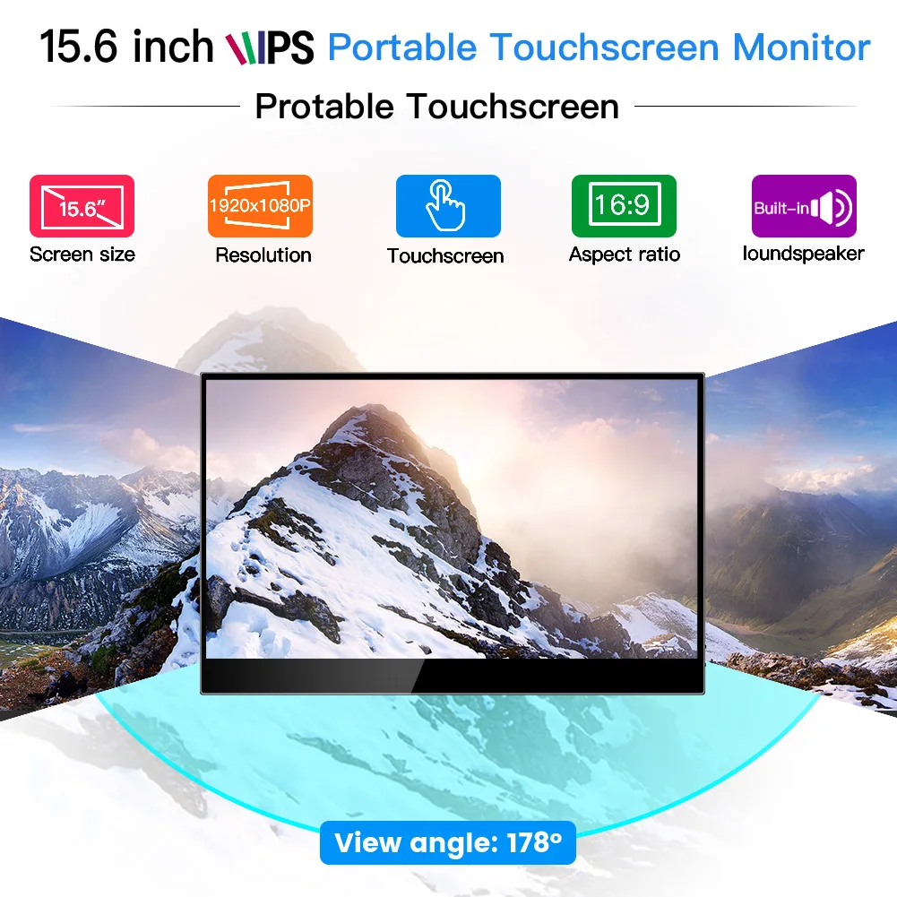 - Cette dalle IPS à écran tactile portable de 15.6 pouces dispose d’une technologie HDR 2K haute résolution de 1920×1080. Angle de vue 178 degrés, rapport d’aspect 16:9, afin que vous puissiez profiter d’images stéréoscopiques réalistes plus claires.