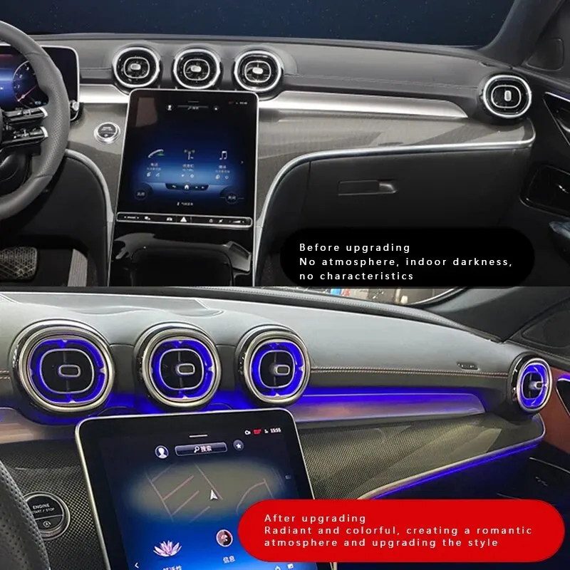 La buse d’aération de climatisation pour Mercedes Benz Classe C offre des fonctionnalités intéressantes pour améliorer l’intérieur de votre voiture. Avec son bec unique d’évent de turbine, elle apporte à la fois élégance et fonctionnalité. Les lumières ambiantes de siège de copilote de porte de LED ajoutent une touche d’élégance supplémentaire, rendant votre voiture plus confortable et attrayante. De plus, la certification CE garantit que le produit répond aux normes de sécurité et de qualité les plus élevées. La fonctionnalité de lampe d’ambiance crée une atmosphère unique et confortable.
