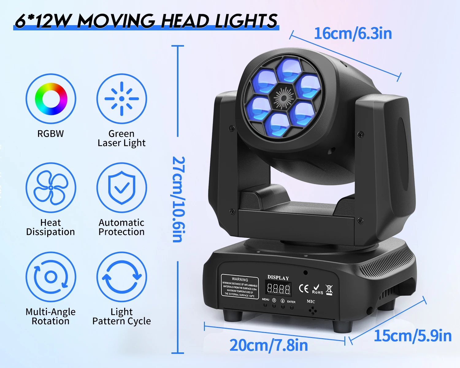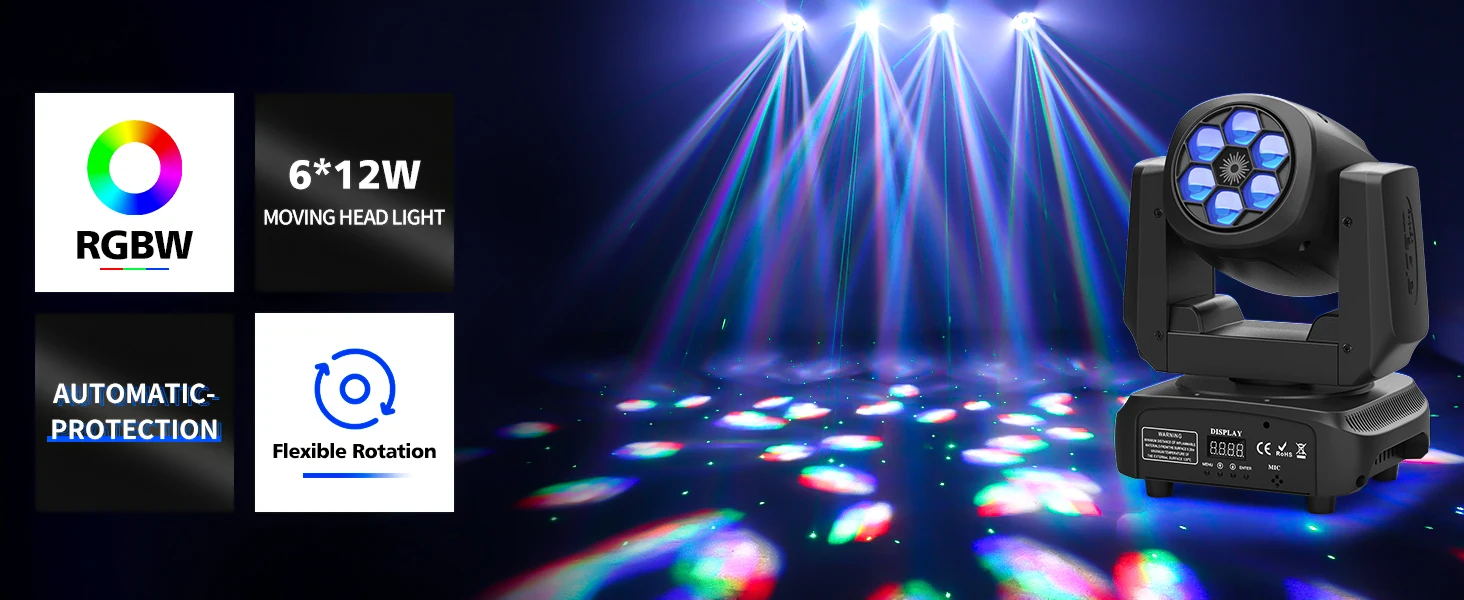 | 6*12W PHARES MOBILES | Luminosité élevée | Aucune limitation mentionnée |