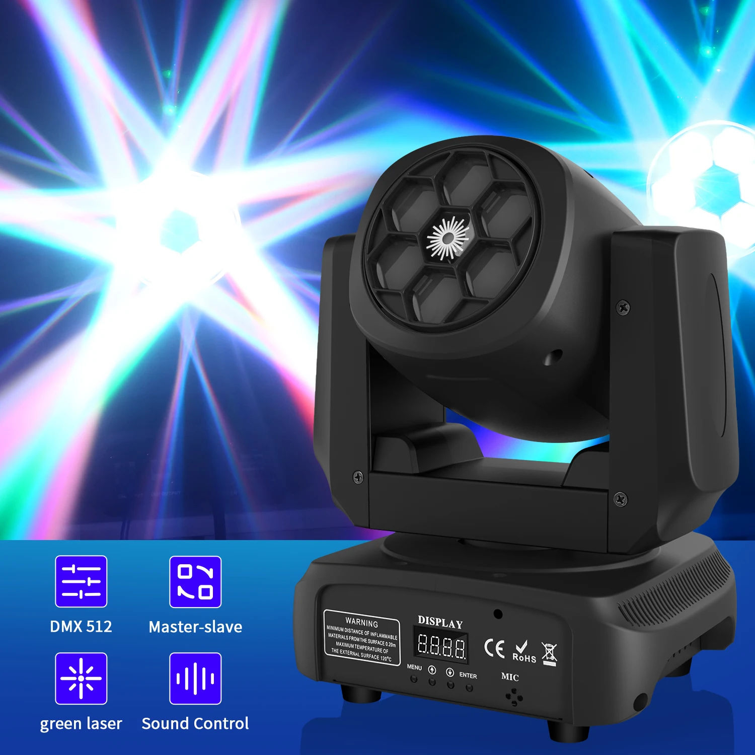 La source de lumière principale utilise 6PCS * 15W RGBW 4-en-1 LED perles + laser vert 200mw 530nm, lumineux et coloré. Cette combinaison vous donnera une expérience visuelle différente.