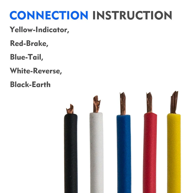 - Connectez le fil bleu à la fonction de queue, le fil rouge à la fonction de frein, le fil noir à la terre, le fil blanc à la fonction inversée et le fil jaune à la fonction d’indicateur.