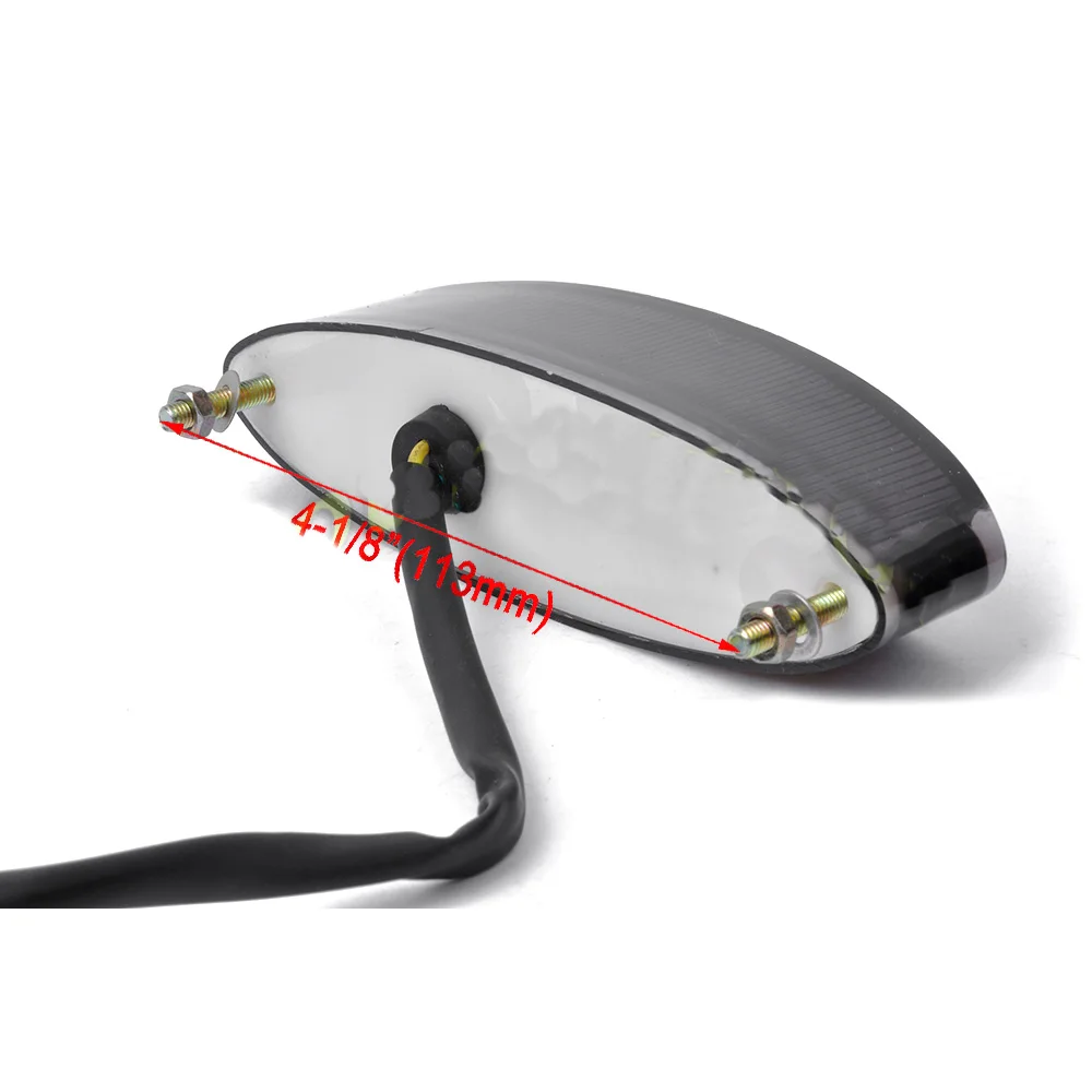 La dimension de ce feu arrière universel est de 4 3/4 « x 1 1/4″ x 1 1/2 » (12 cm X 3cm X 3.5 cm).