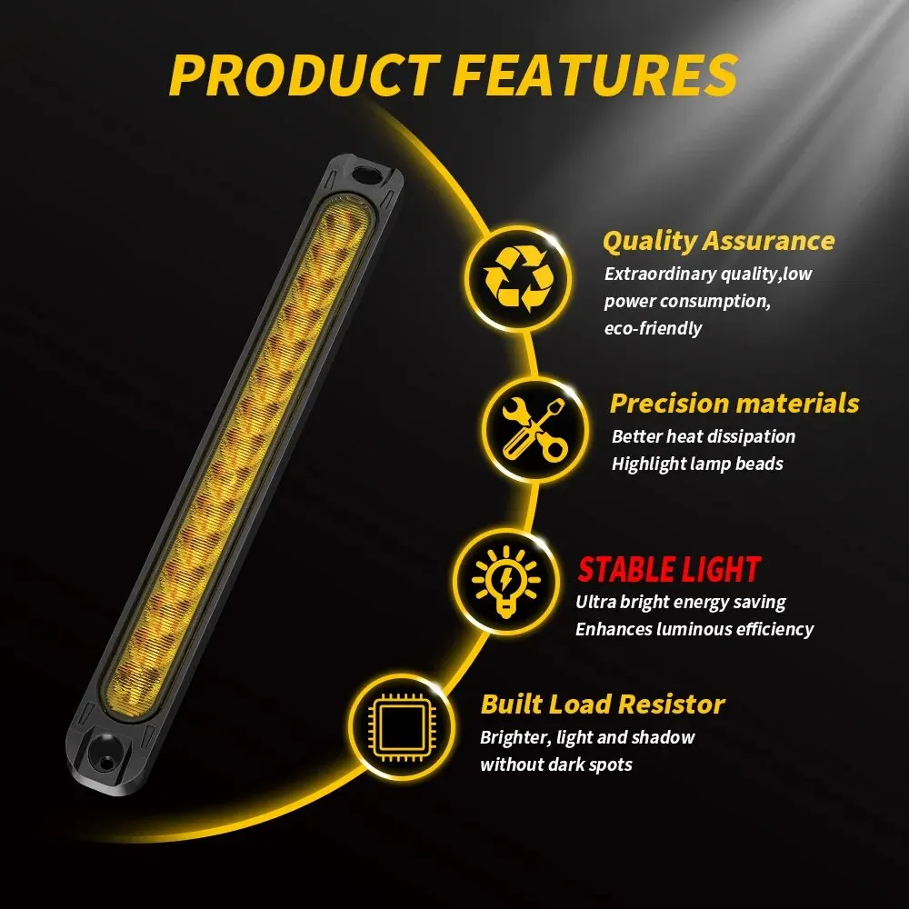 Le feu arrière automatique pour remorque, feu d’identification LED, clignotant LED, bande de barre de feu arrière, feux de position latéraux arrière de camion est un accessoire essentiel pour assurer la sécurité sur la route. Ses caractéristiques telles que sa luminosité élevée de 2400LM et sa compatibilité universelle en font un choix idéal pour tous les types de véhicules. De plus, sa durabilité et son design élégant ajoutent une touche de sophistication à votre véhicule. Je