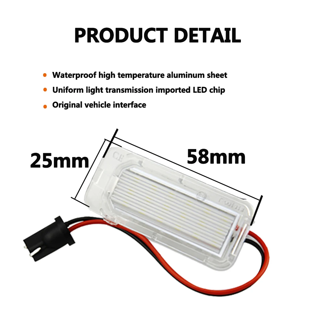 - Une paire de lampe d’éclairage de plaque d’immatriculation LED haute puissance 18SMD