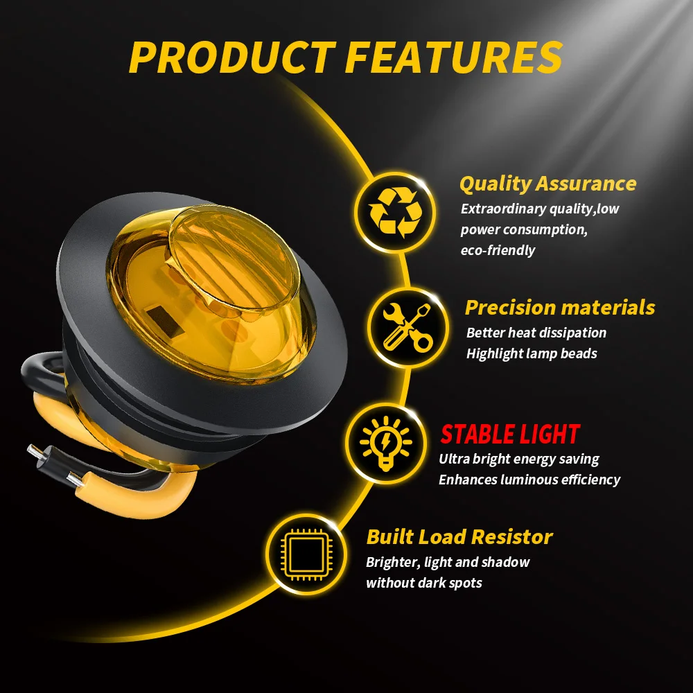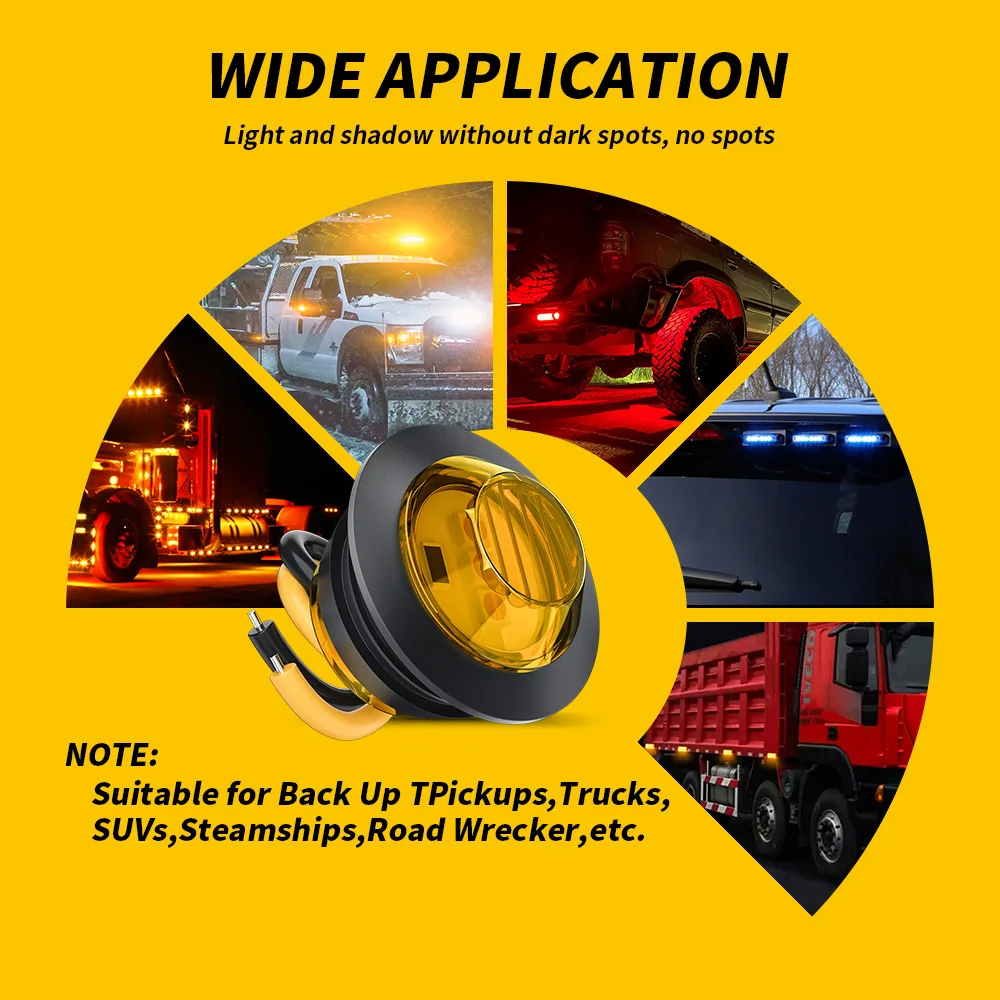 12V/24V 3/4 pouces rond remorque côté marqueur feux de gabarit camion LED feux de gabarit jaune blanc rouge camion clignotant lampe