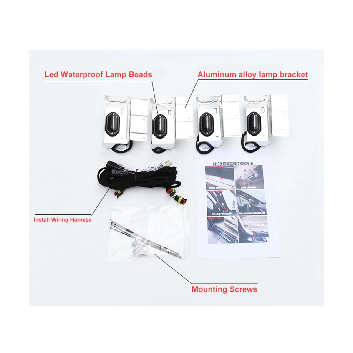 - Contenu d’emballage: 4 x lumières de marchepied latéral de porte, 1 x câble