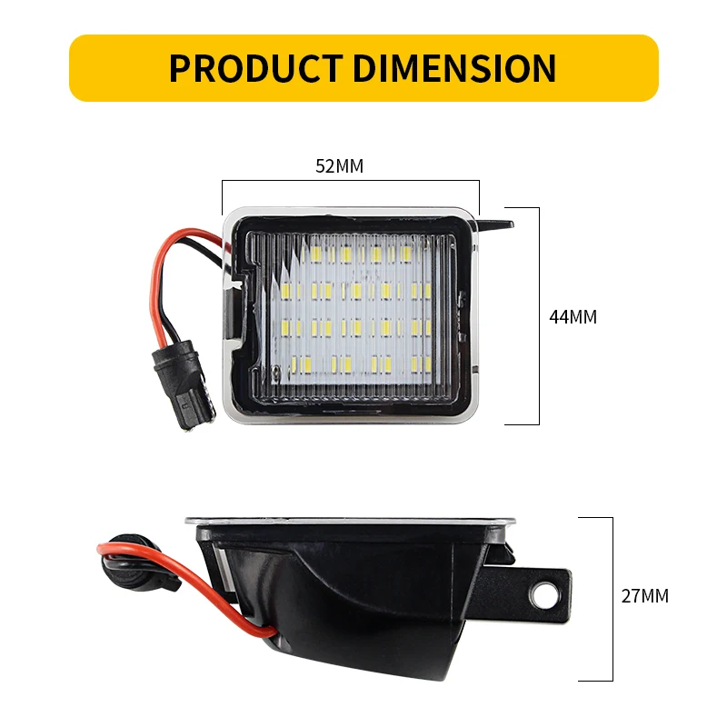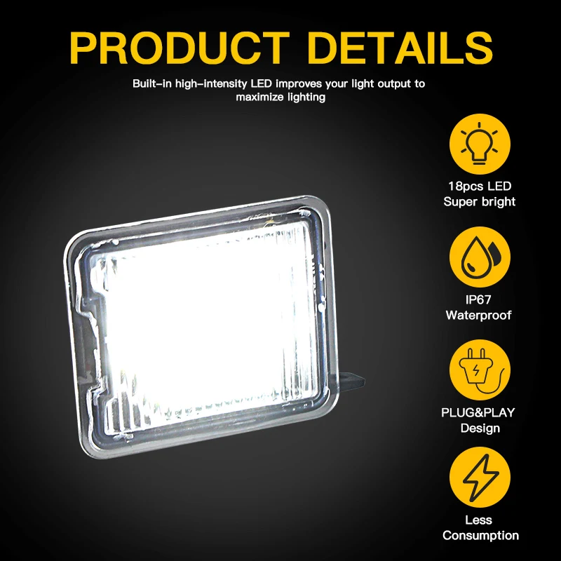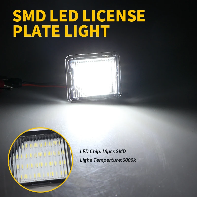 - Chaque éclairage de plaque d’immatriculation est équipé de 18 perles de lampe LED haute puissance SMD