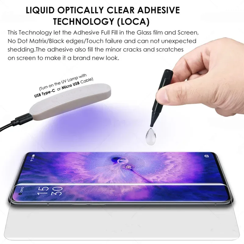 Voici les points importants à retenir du Film de protection d’écran incurvé UV HD Full Glue Guatemala, pour OPPO Find X X2 Bery X5 Pro Neo 9H :
