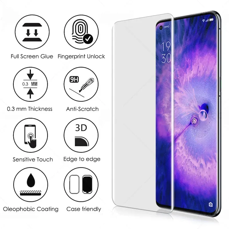 Film protecteur d’écran en verre trempé pour OPPO Find X X2 X3 X5 Pro, couverture complète, avec colle UV, pour OPPO Find X2 X3 Neo