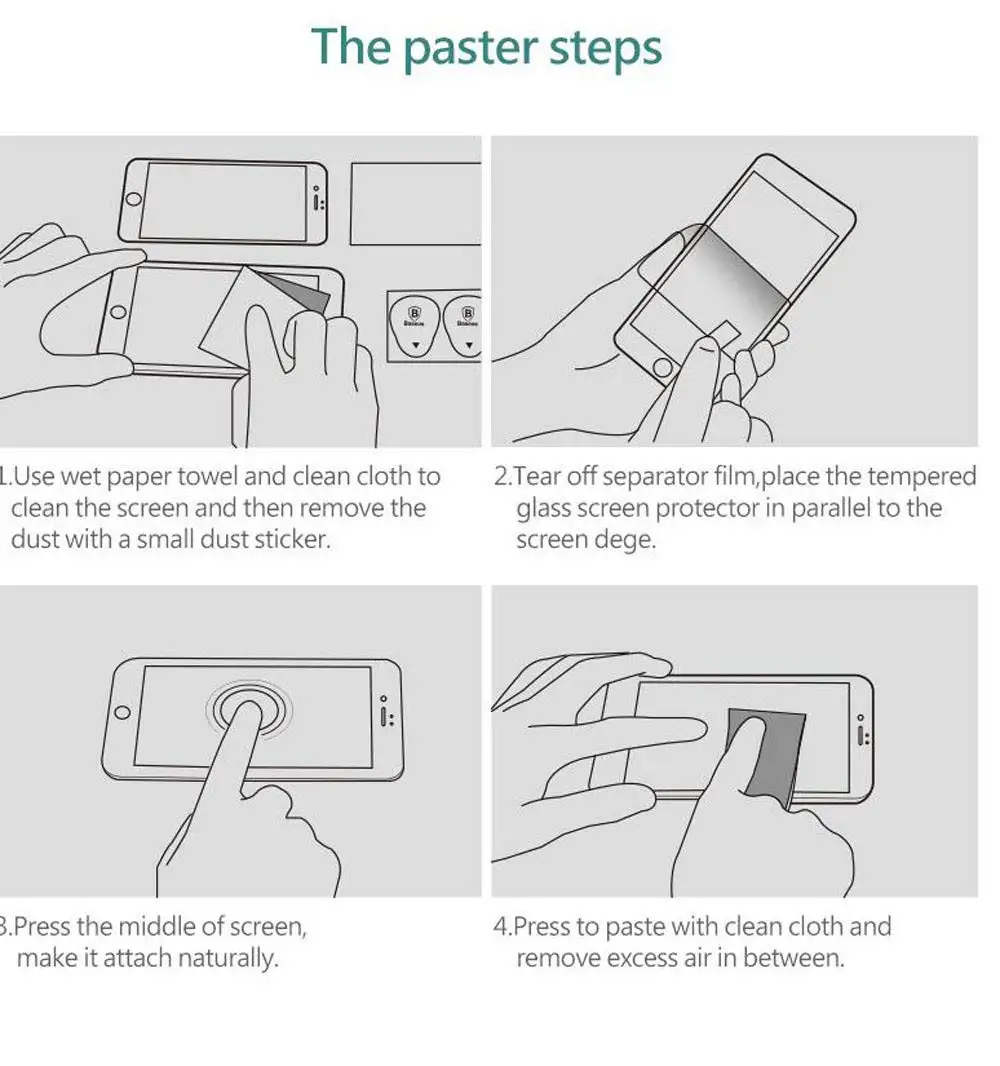 - Enduit d’un adhésif silicone avancé puissant qui fixait fermement le film, enduit à l’avant d’un revêtement oléophobe qui empêche les empreintes digitales.