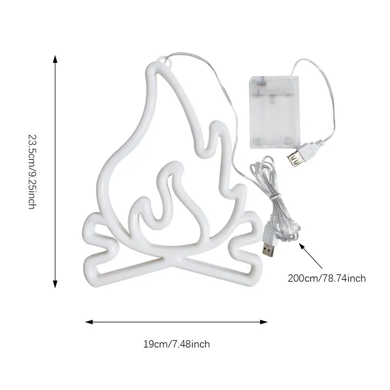 Test et avis sur les enseignes au néon en forme de flamme avec base, lumière LED, échelles d’éclairage pour mur, veilleuse pour anniversaire, fête, salle de sports électroniques, décoration