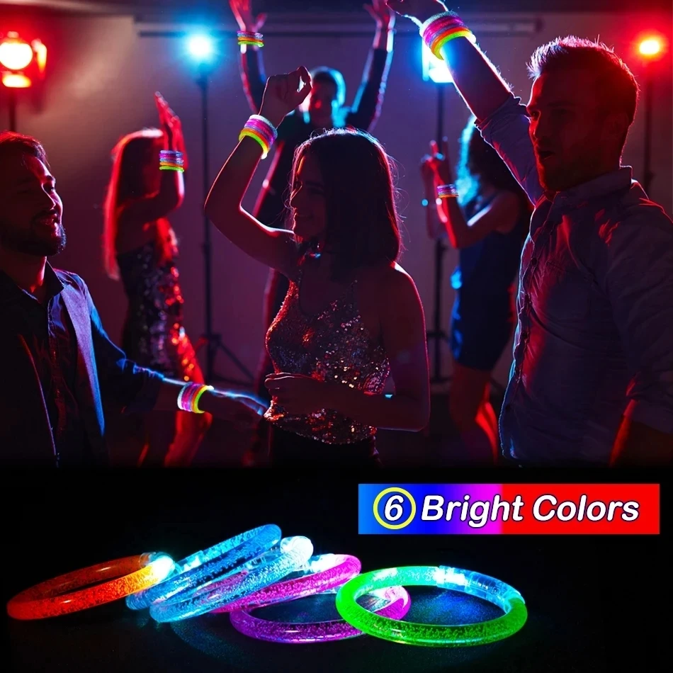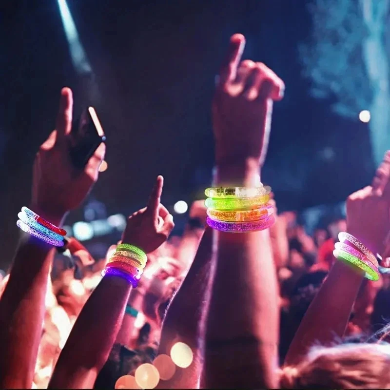 Ces bracelets lumineux sont fabriqués à partir d’acrylique dur léger et durable. À l’intérieur, ils ont de nombreuses bulles irrégulièrement distribuées qui dispersent la lumière et offrent une expérience visuelle extraordinaire la nuit.