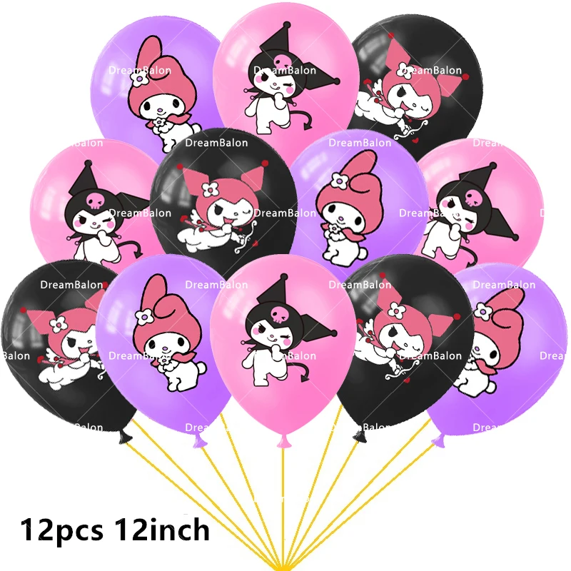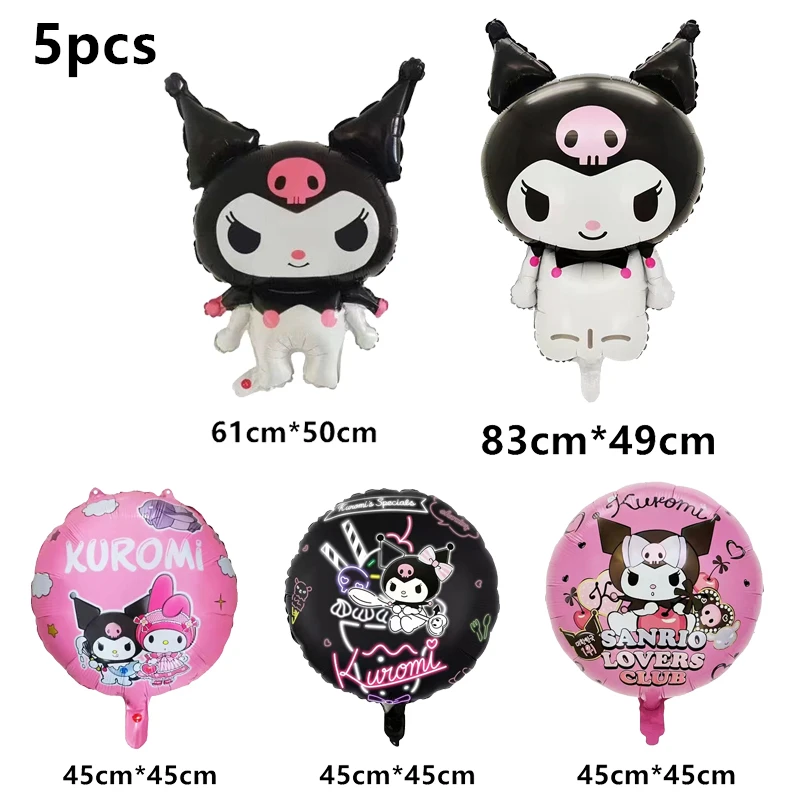 Les Ballons de dessin animé Kawali Kuromcence sont des fournitures de fête roses, parfaites pour une décoration joyeuse et amusante. Ce kit comprend une bannière en papier avec l’inscription « Joyeux Anniversaire », un Cake Topper, des Cupcake Toppers, des ballons en papier d’aluminium et des ballons en latex de différentes couleurs.