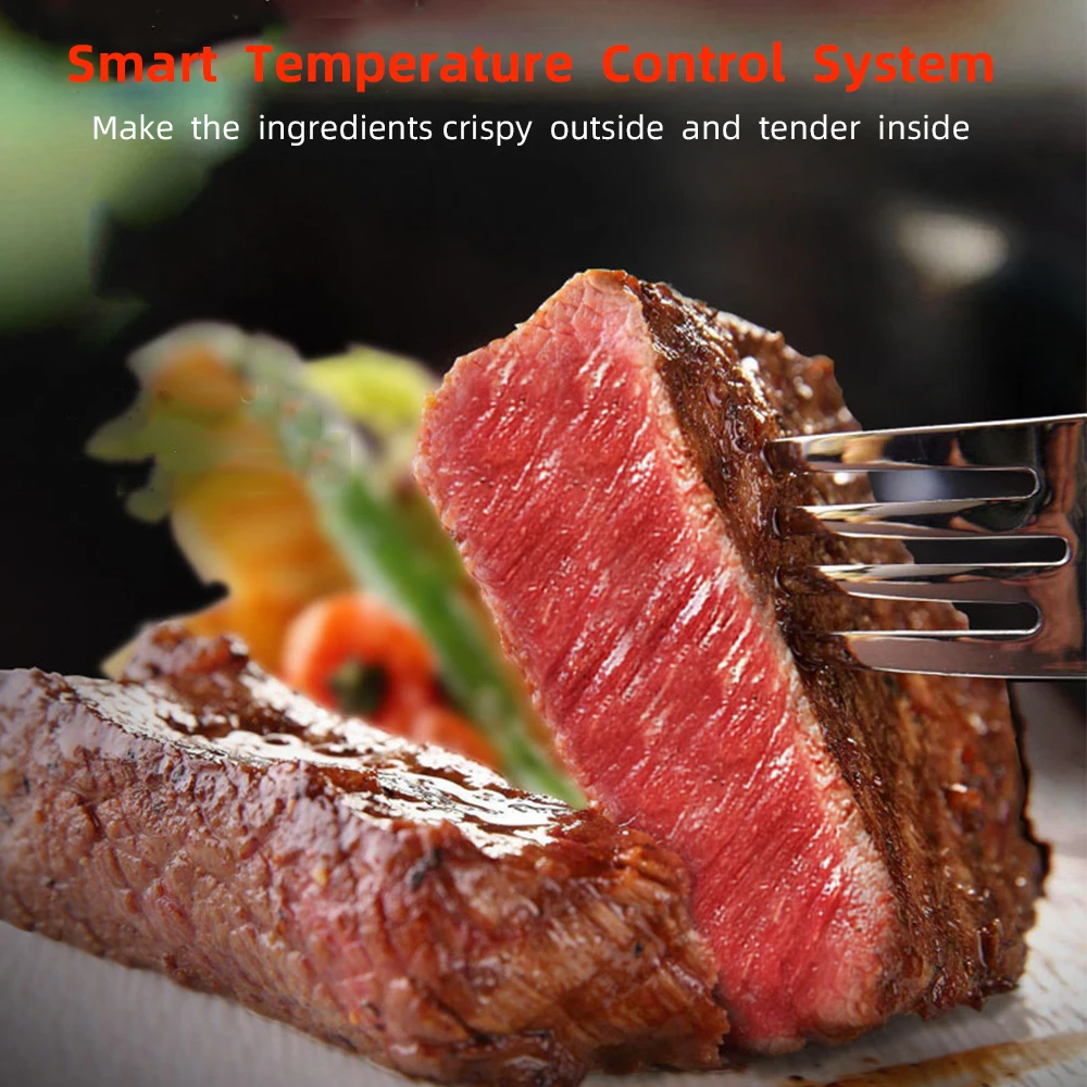 Couplé à la sonde de température NTC et à l’algorithme de la puce PID, notre four à convection pour friteuse à air intelligent possède un système de contrôle de température intelligent performant, qui assure une température précise et stable pendant le processus de cuisson de 100 fois par seconde. Vérifier pour fournir un résultat croustillant et juteux. Jusqu’à 85% moins de graisse que le four à frire traditionnel, ce four à friteuse à air sans huile est votre choix plus heathier pour profiter des aliments sans culpabilité. Le meilleur cadeau pour la famille ou les amis soucieux de leur santé.