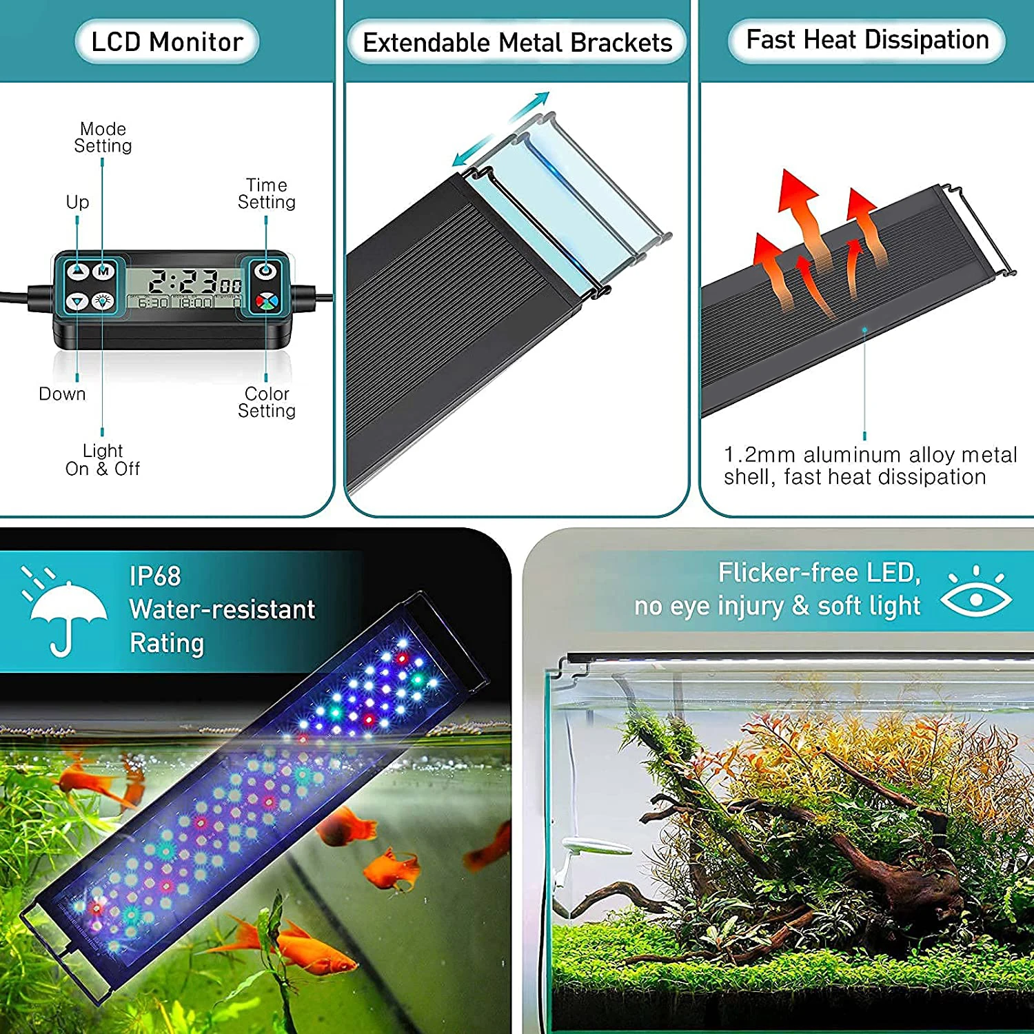 | Nom du produit | Fullgain-Lampe LED pour Aquarium avec Écran LCD 24/7, Imperméable, en Alliage d’Aluminium, Barre Extensible, EUROPEENNE pour la Croissance des Plantes |