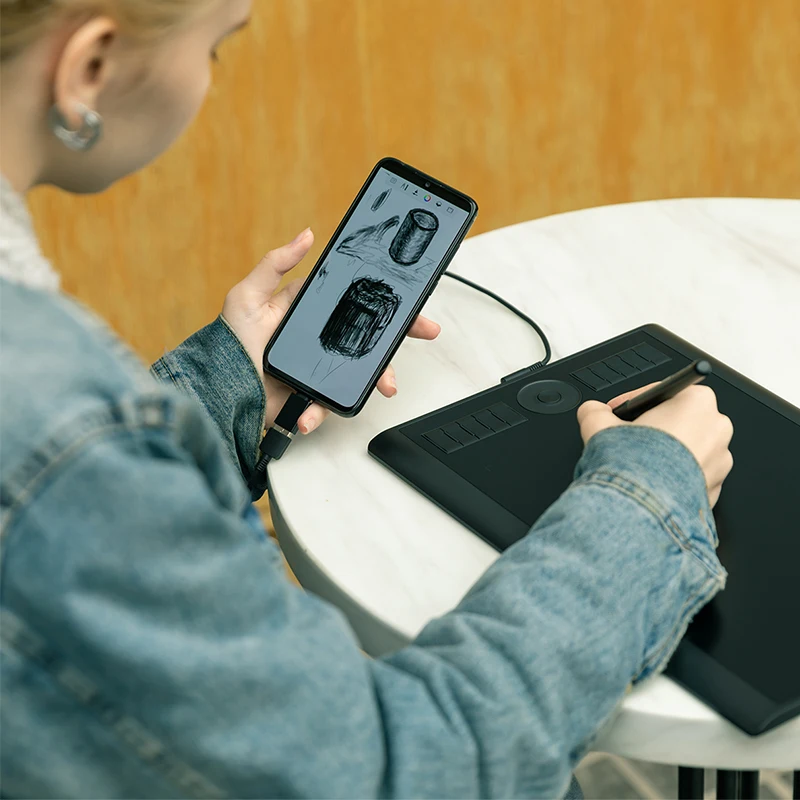 M10K PRO est compatible avec Android OS 6.0 ou une version ultérieure. Vous pouvez connecter la tablette à votre téléphone/tablette Android mobile avec l’adaptateur OTG pour commencer à créer de l’art librement.