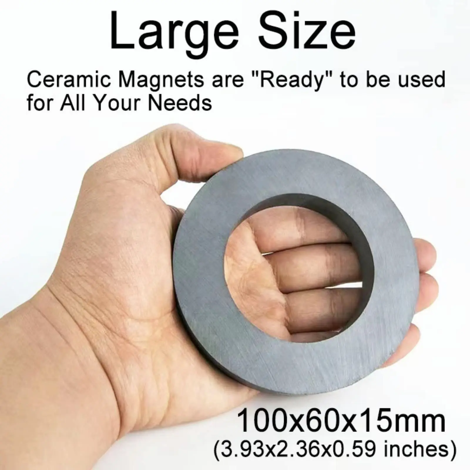 Les aimants ont un diamètre extérieur de 100mm, un diamètre intérieur de 60mm et une épaisseur de 15mm.