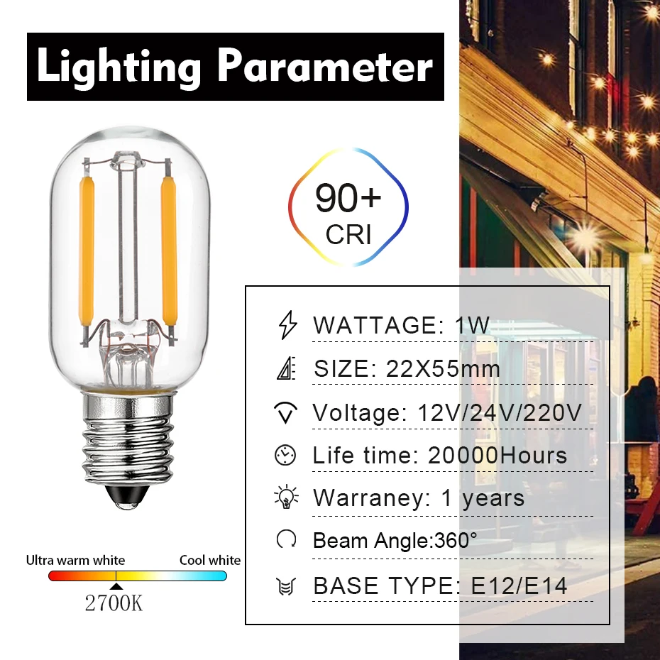Ampoule de faible watt, tension de fonctionnement DC 12 volts ou 24 volts, sortie 1 watt. Compatible avec basse tension DC 12 volts 24 volts, largement utilisé dans les systèmes de cellules solaires, les systèmes d’éclairage RV et marins et les transformateurs de courant.