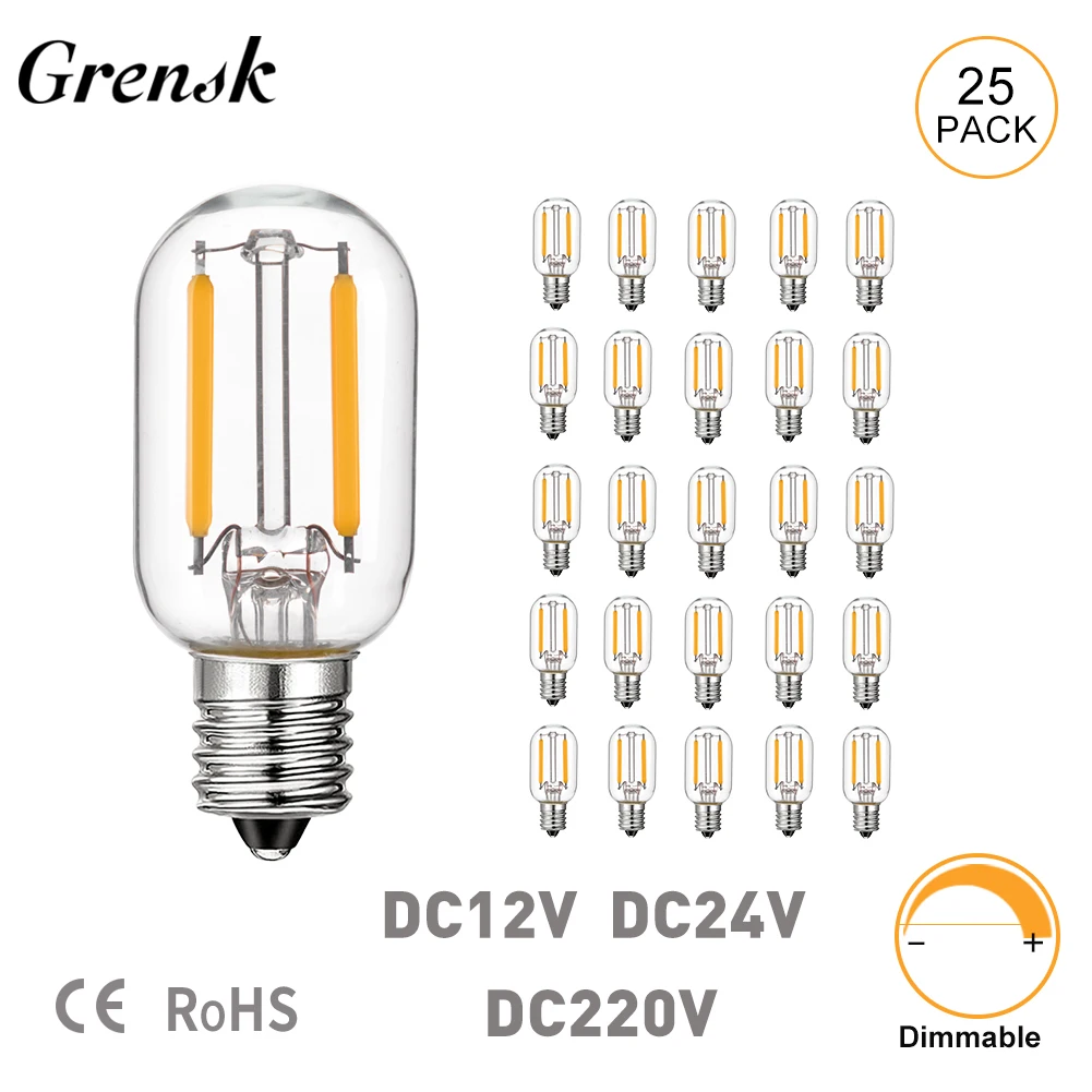 Grensk DC 12V 24V 220V Ampoules tubulaires basse tension T22 1W Ampoule à filament LED E12 Candélabre Base Lampe à LED RV Locomotive Room Lights – Test et Avis