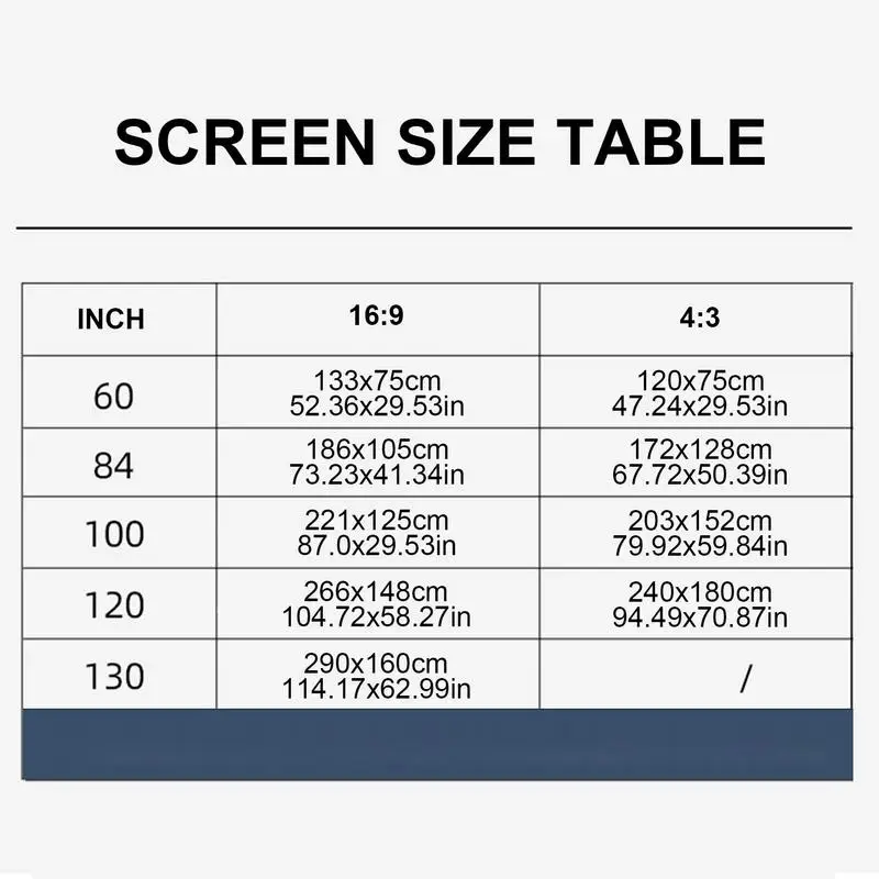 - 130 pouces : environ 2,9 x 1,6 m