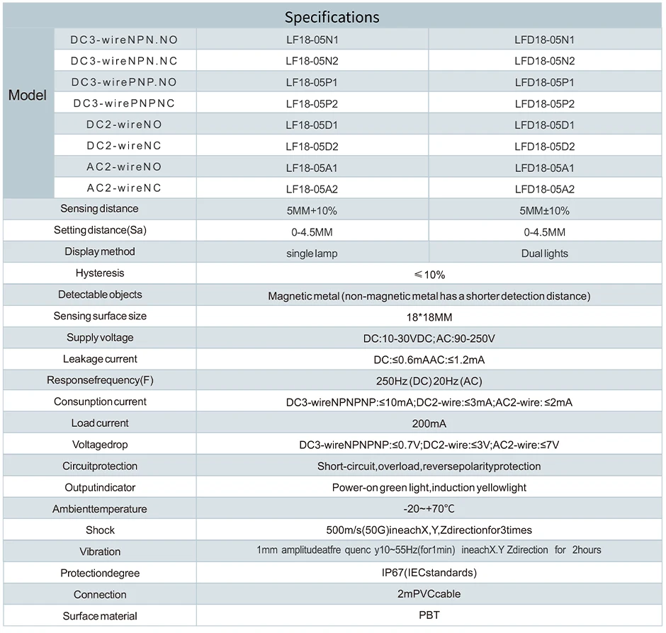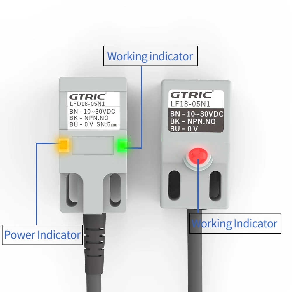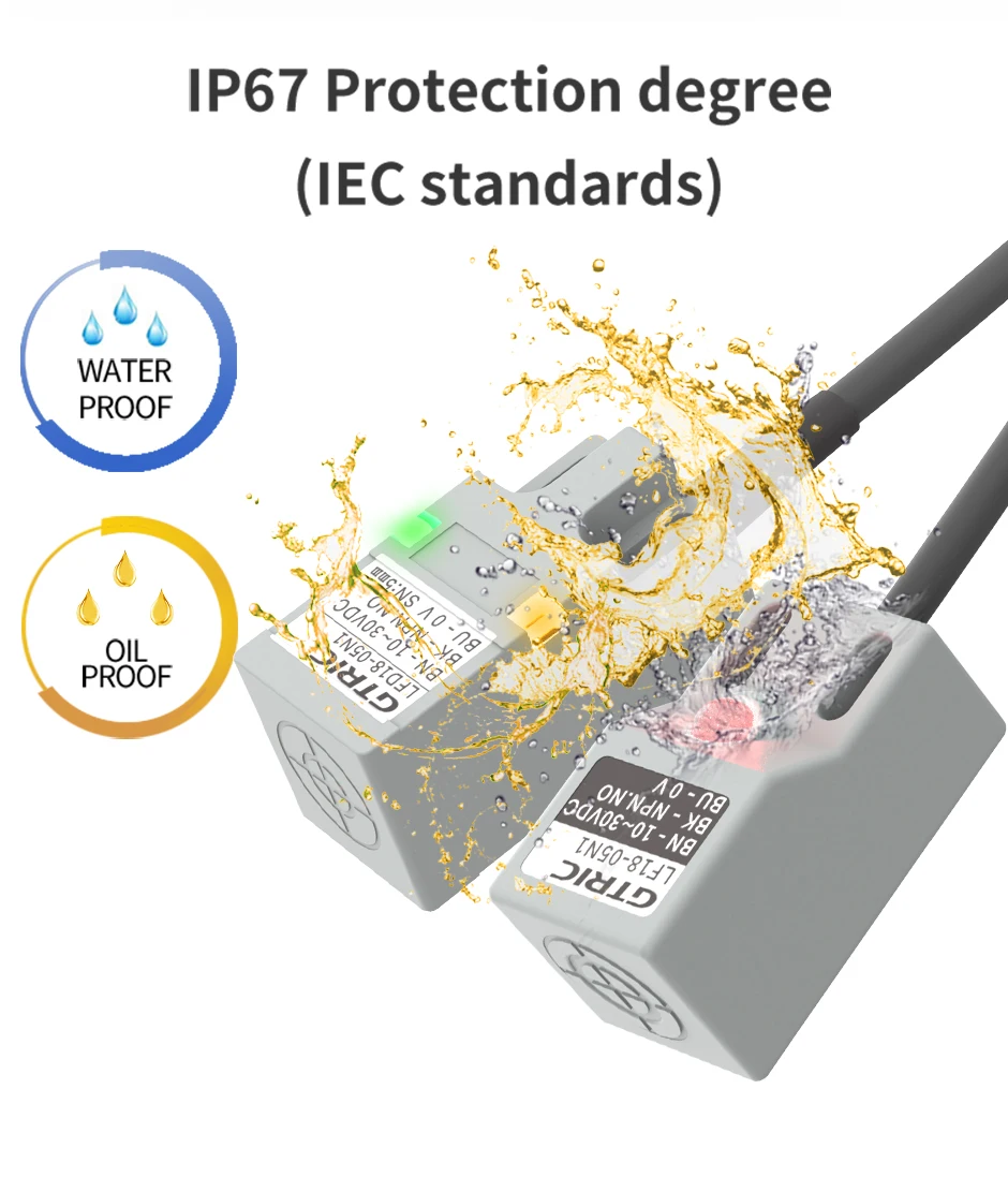En résumé, le commutateur de capteur de proximité inductif carré GTRIC SN04 est un choix fiable pour les applications d’automatisation industrielle nécessitant une détection précise à courte portée. Sa double lampe et sa certification IP67 en font un produit durable et polyvalent.