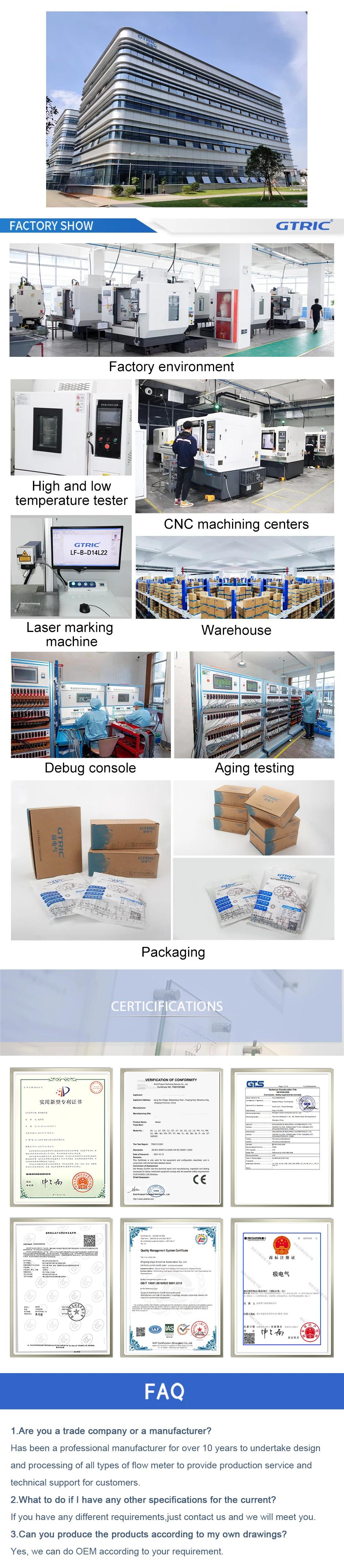Notre couverture de produits plus de 20 séries, 1000 spécifications, qui ont passé la certification ccc, CE, UL, ISO9001 ainsi que les directives environnementales d’UE RoHS. Basé sur nos avantages techniques, Gtric peut fournir la solution d’automatisation industrielle selon les exigences des clients.