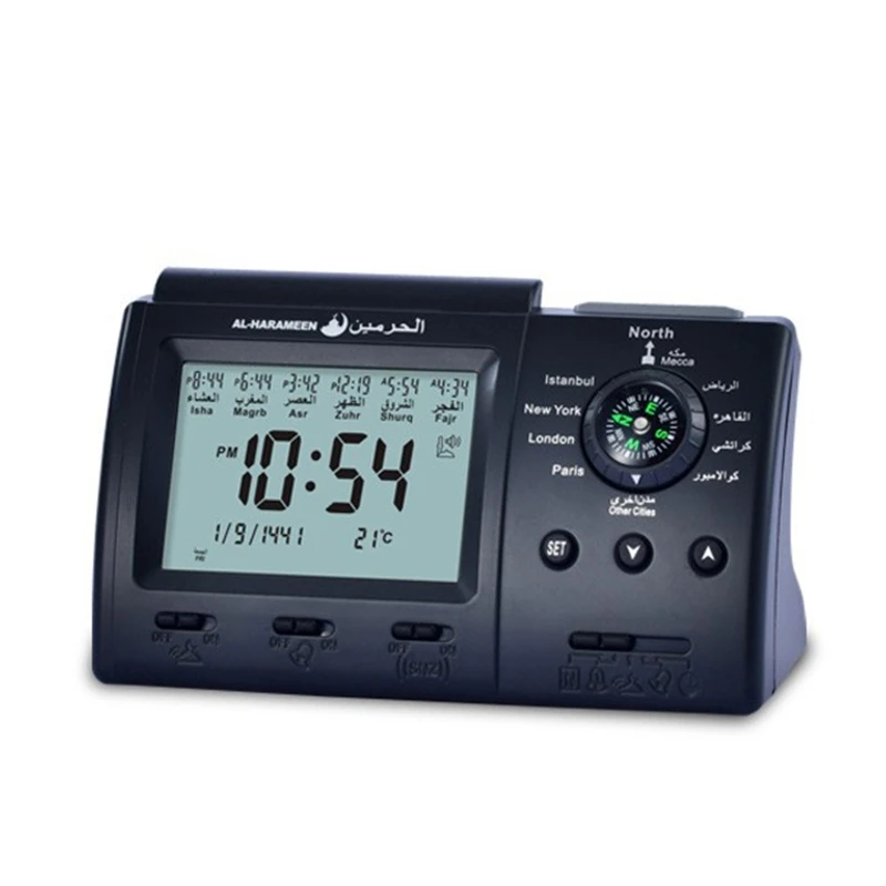 - Horloge de table musulmane avec alarme, Azan islamique pour la prière, affichage de la température de Direction,