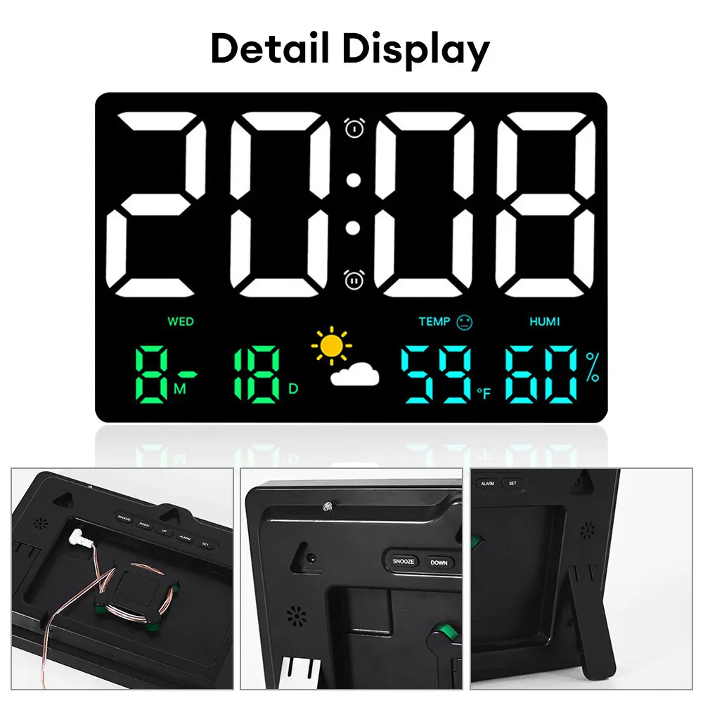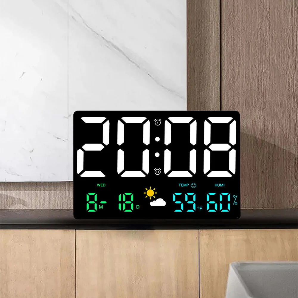 | Design | Grande horloge murale numérique avec affichage couleur et indicateur de confort de température |