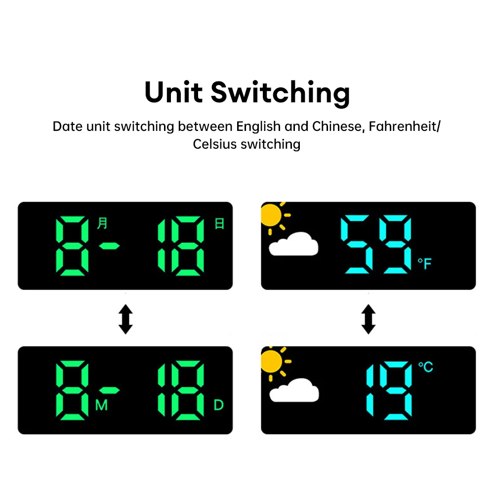 Vous pouvez régler la luminosité de l’écran sur 5 niveaux différents pour que l’affichage soit toujours parfaitement lisible. De plus, vous avez la possibilité de choisir entre l’unité de date chinoise et anglaise, ainsi que de passer de Fahrenheit à Celsius pour la température. L’horloge dispose même d’une fonction de détection de lumière qui ajuste automatiquement la luminosité de l’écran en fonction de la luminosité ambiante.