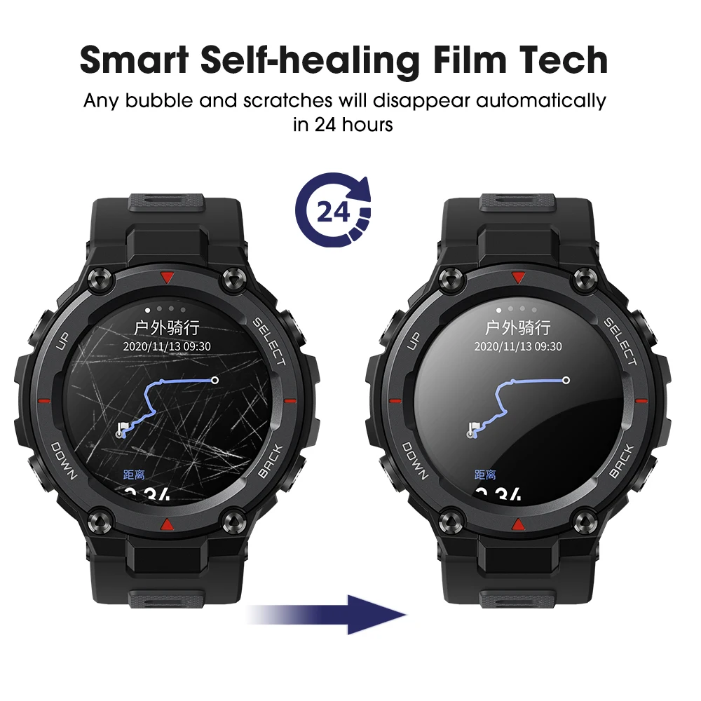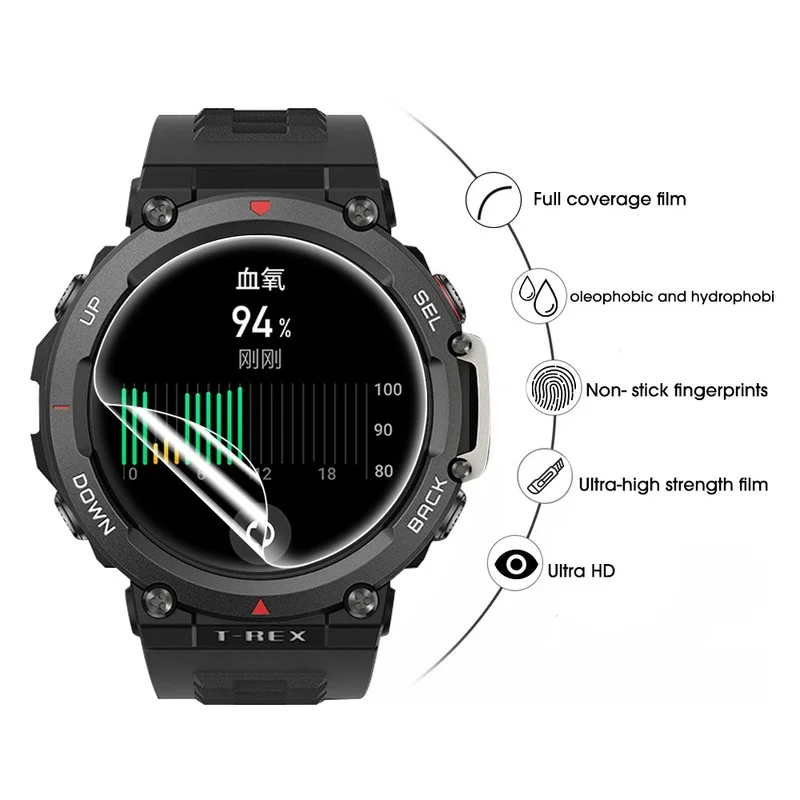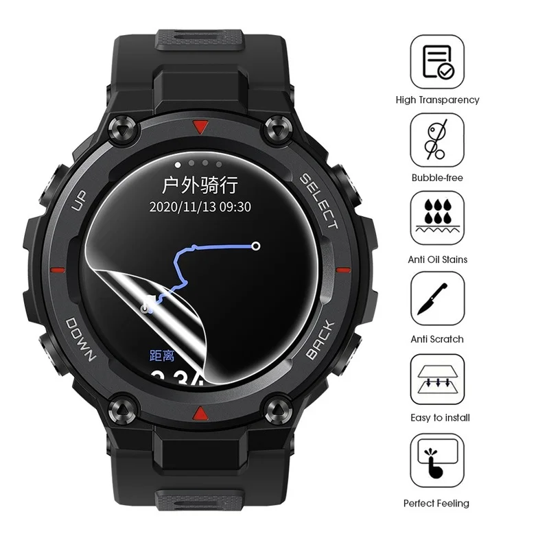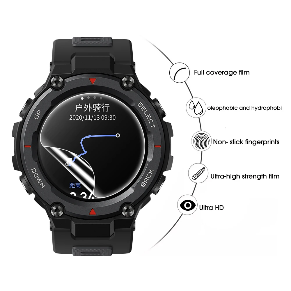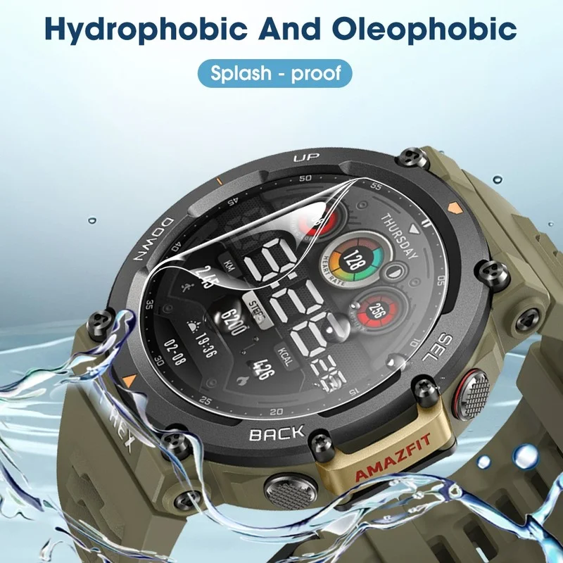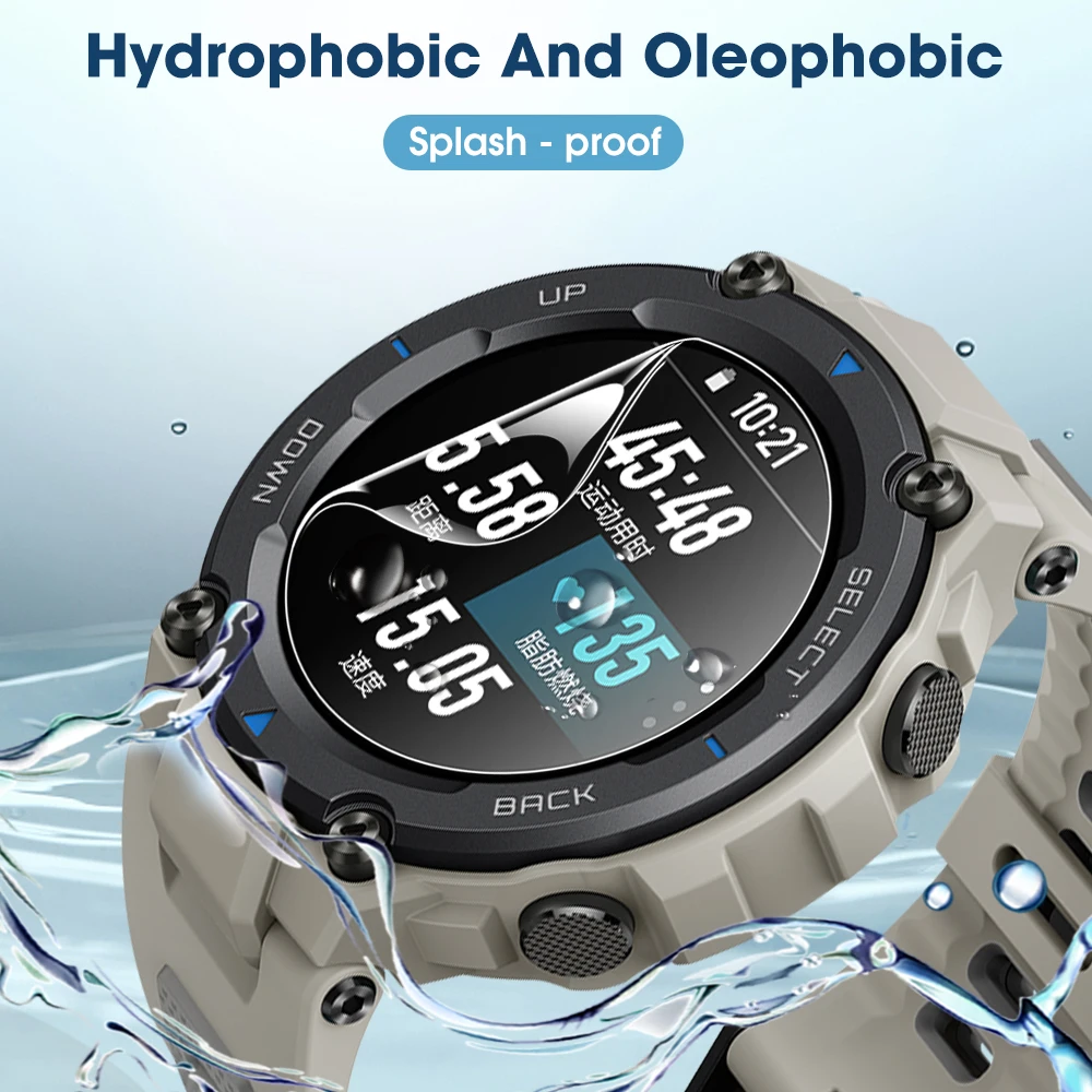 - Le protecteur d’écran à revêtement oléophobe protège efficacement la smartwatch de l’eau, de l’huile ou des gouttes de pluie.
