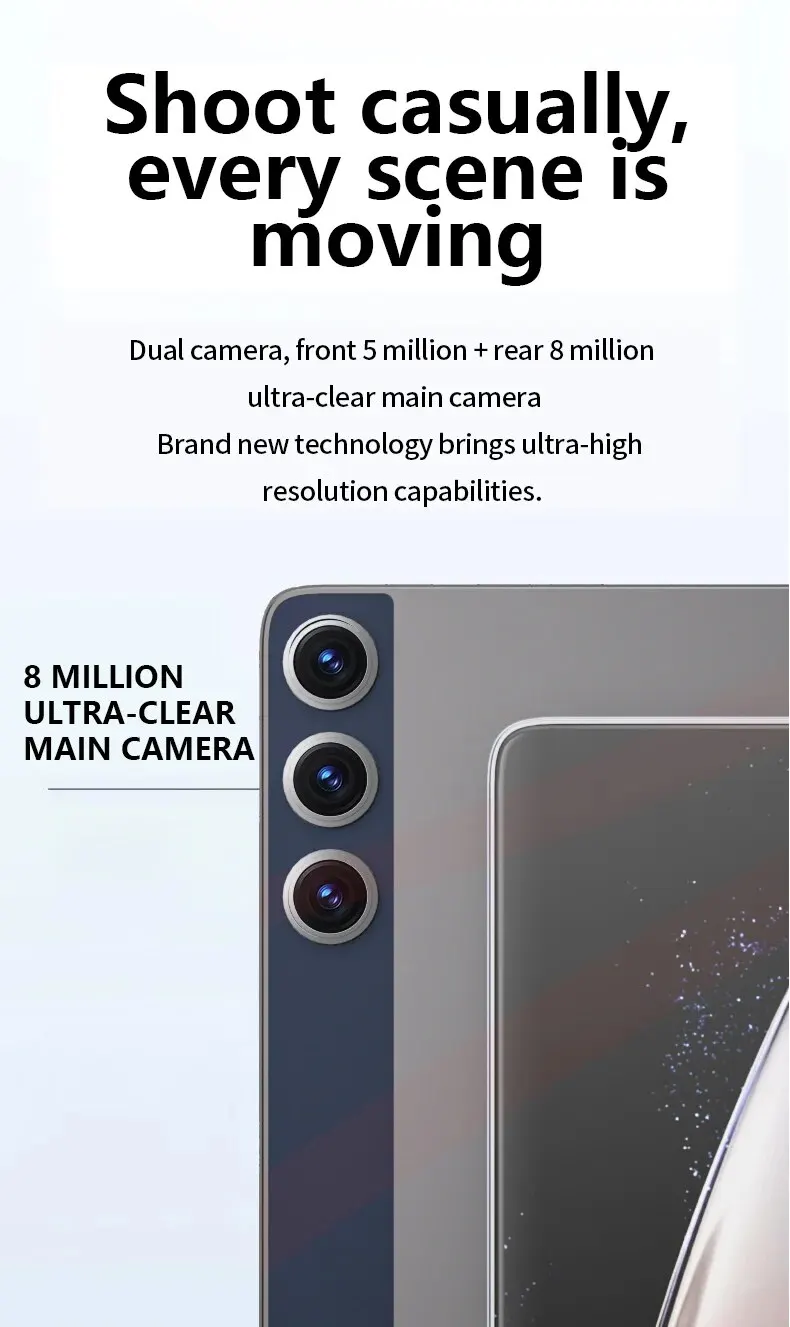 Les caméras doubles permettent de capturer des images de haute qualité, idéales pour les instantanés, les selfies et les appels vidéo. De plus, la fonction de protection des yeux AR réduit la fatigue oculaire lors d’une utilisation prolongée.