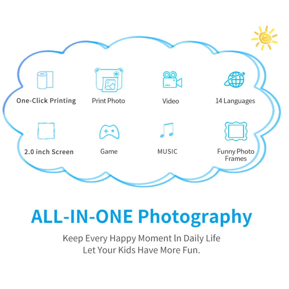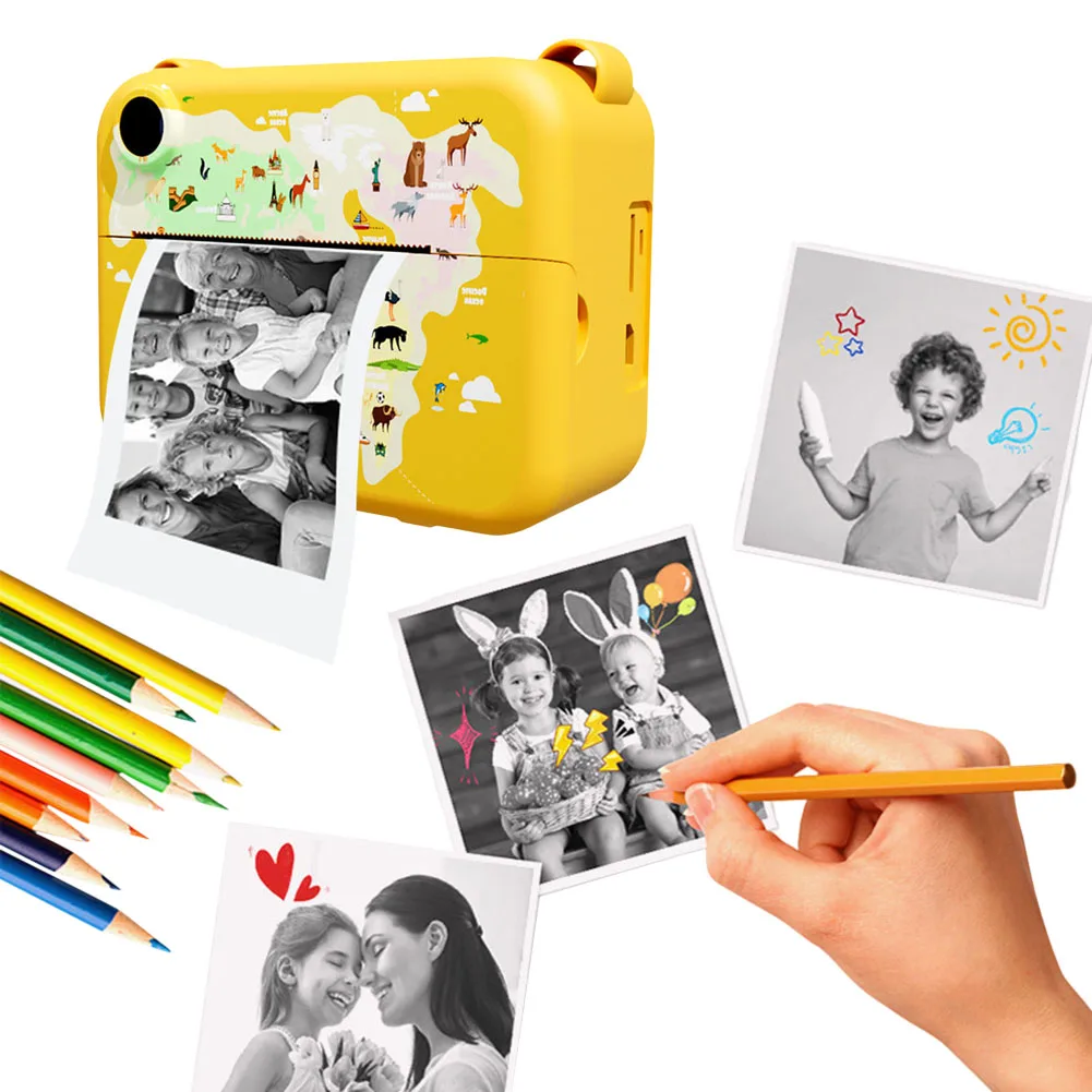 L’appareil photo numérique pour enfants tire parti de la technologie d’impression thermique pour prendre en charge l’impression automatique instantanée de photos « noir et blanc » vives et de haute qualité sans avoir besoin de cartouches, d’encre ou de toner volumineux. Il est simple à utiliser, économe en énergie et écologique.
