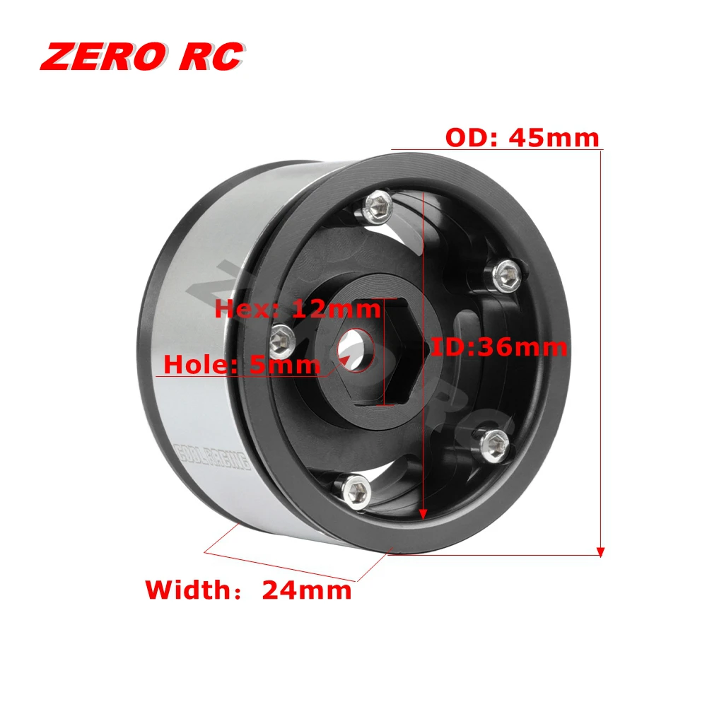 R: Les jantes ont un diamètre extérieur de 45mm, un diamètre intérieur de 36mm, une épaisseur de 24mm et un diamètre de trou central de 5.0mm. Elles ont également un support hexagonal de 12mm.