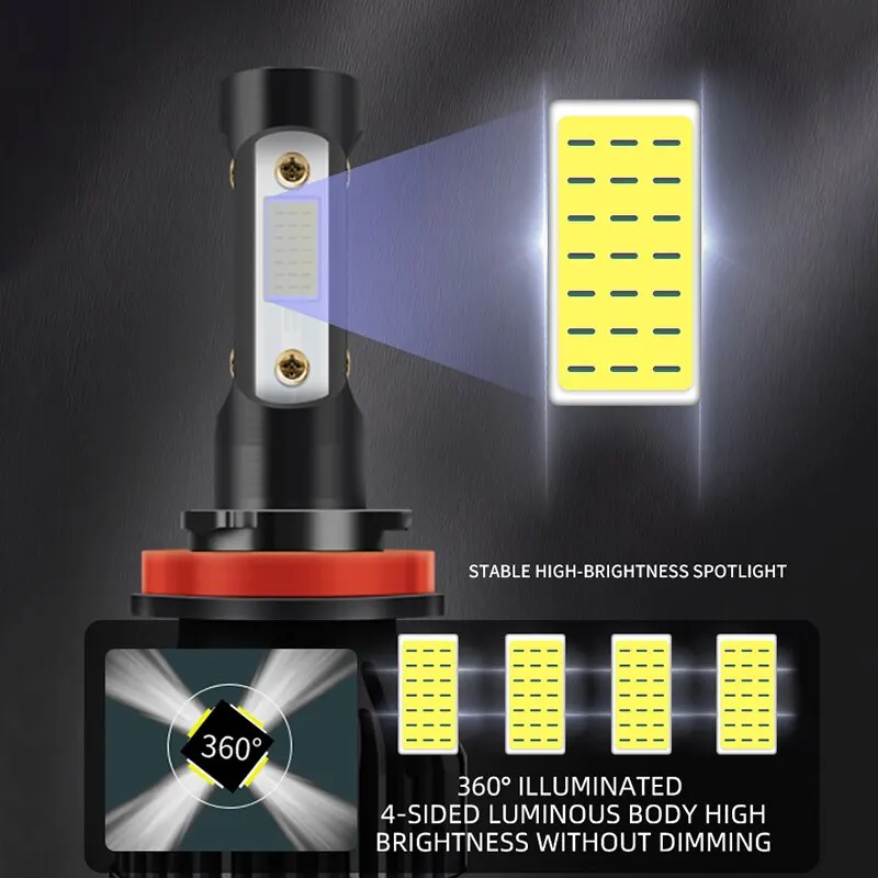 Ampoules LED de voiture à faisceau haut et bas, phares antibrouillard automatiques, lampes de sauna, 12V, 360 degrés, 9005 K, H11, H4, H7, H1, H3, 9006, 6500, 2 pièces