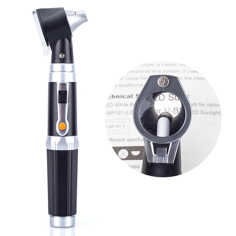 | – Équipé de 4 types de spéculems de tailles différentes et le diamètre est de 2.5mm, 3mm, 4mm, 5mm pour les enfants et les adultes. | Ampoule: LED & 109J 3.0V, 80Ma (5000 heures de travail) | |