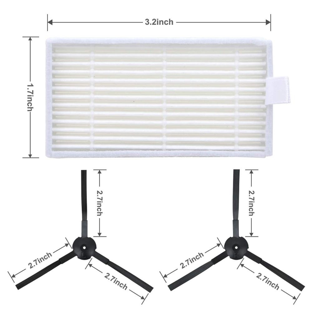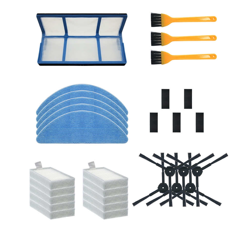| Ilife V5, V5S, V3, V3S, V5Pro, V50, V55, X5, V5S Pro | 10 x filtres, 10 x autocollants en nylon, 6 x brosses latérales, 5 x chiffons de vadrouille, 1 x filtre primaire, 3 x brosses de nettoyage | Plastique | Tous les 2-3 mois |