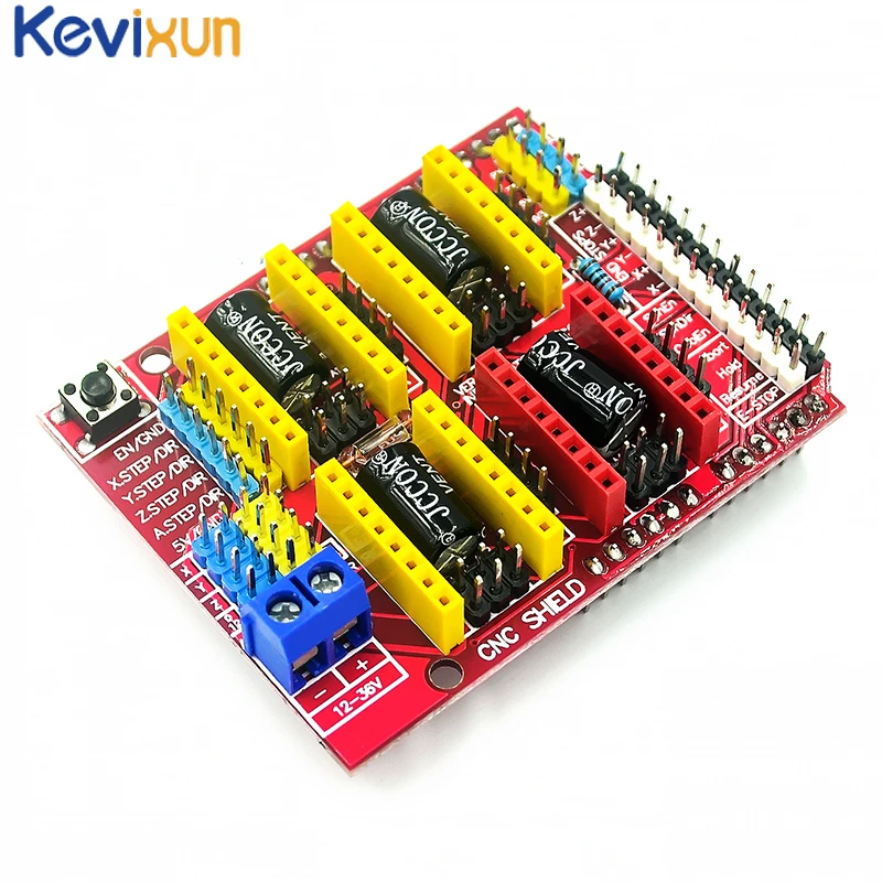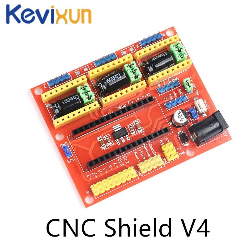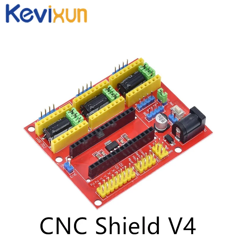 Le bouclier CNC V4 doit fonctionner avec la carte Nano. Il peut être utilisé comme carte d’extension de pilote pour les machines de gravure et les imprimantes 3D. Il a au total 3 emplacements de canal pour les modules de pilote de moteur pas à pas A4988 (non inclus) pour conduire 3 canaux de moteurs pas à pas. Chaque canal de moteur pas à pas ne nécessite que 2 ports IO, ce qui signifie que 6 ports IO suffisent pour gérer 3 moteurs pas à pas. Ce bouclier peut faire un travail rapide pour gérer les moteurs pas à pas dans votre projet.