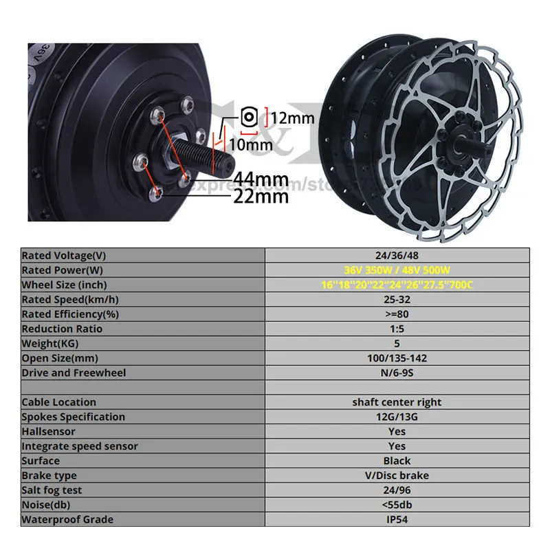 | Puissance évaluée (W) | 36V 350W / 48V 500W |