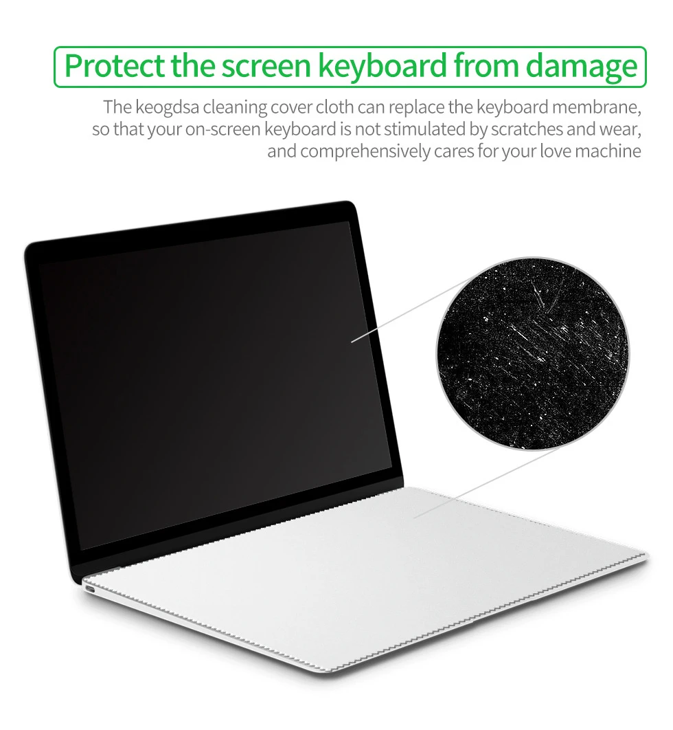 – 100% neuf et de haute qualité – Écologique à utiliser – Fabriqué en mélange de microfibres de haute qualité – Conçu pour empêcher le transfert de marques du clavier à l’écran – Bord taillé au laser de précision – Élimine efficacement les empreintes digitales, les taches, la poussière, la crasse, l’huile et la saleté |