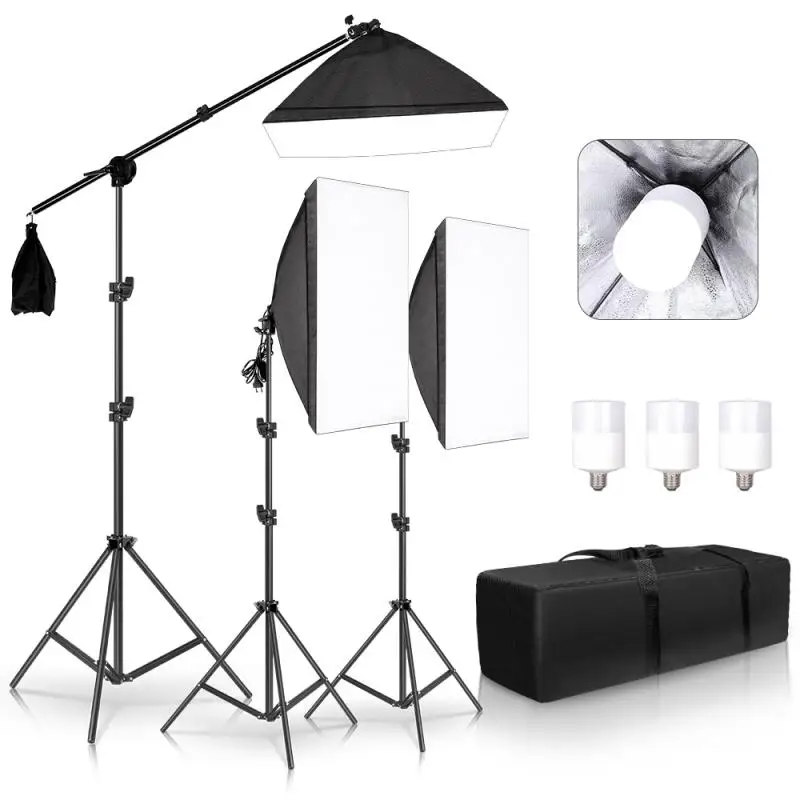 | Inclus | 3 pièces Softbox, support lumineux, cantilever, pince à pivot, sac de sable, sac de transport Oxford, diverses ampoules |