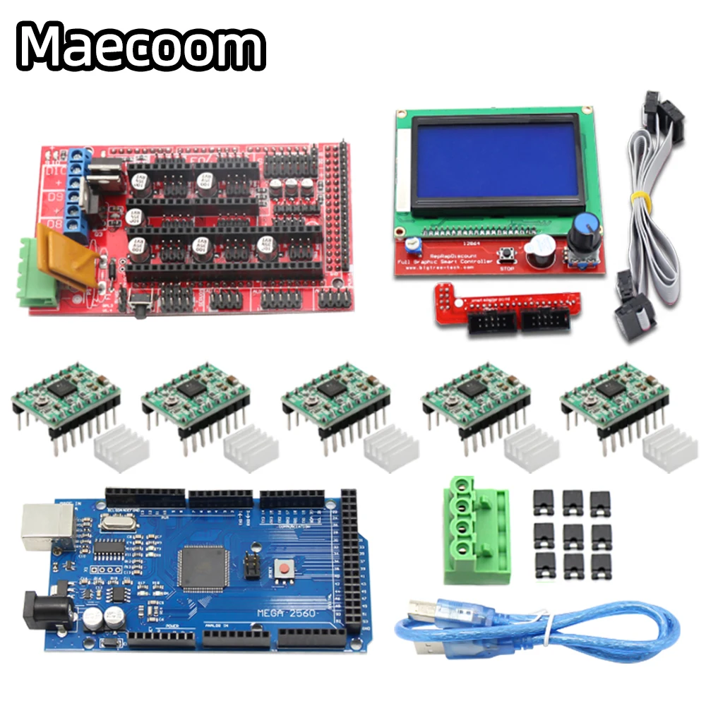 | Produit | Kit d’imprimante 3D avec contrôleur RAMPS 1.4 + carte Mega 2560 + pilote de moteur pas à pas A4988 + LCD 12864 pour Arduino RepRap 5 pièces |