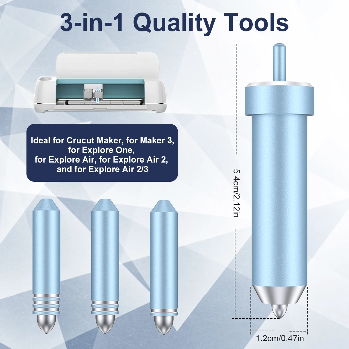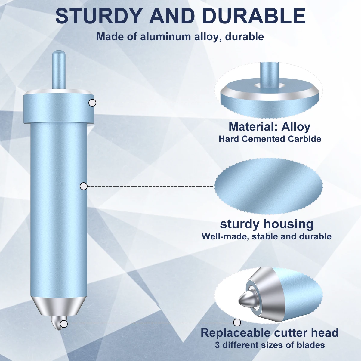 Le kit comprend trois lames de rechange faciles à installer et à couper. Elles conviennent parfaitement aux machines Cricut, vous permettant ainsi de vous concentrer sur votre propre artisanat et créations. Vous n’avez pas besoin de changer le boîtier lorsque vous devez changer de lame.