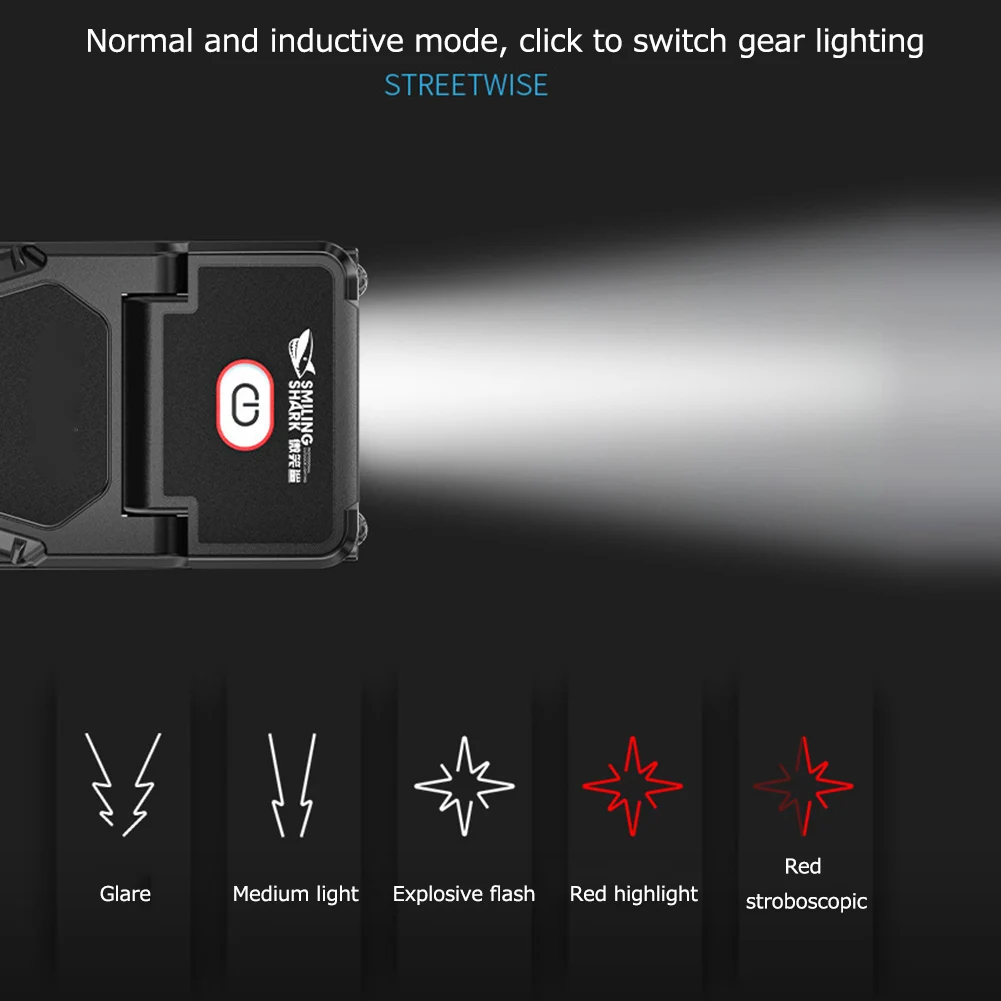1. détection d’onde:Le phare a un mode normal et inductif, cliquez pour changer d’éclairage. Agitant votre main pour contrôler la lampe frontale LED allumer/éteindre en mode capteur de mouvement.