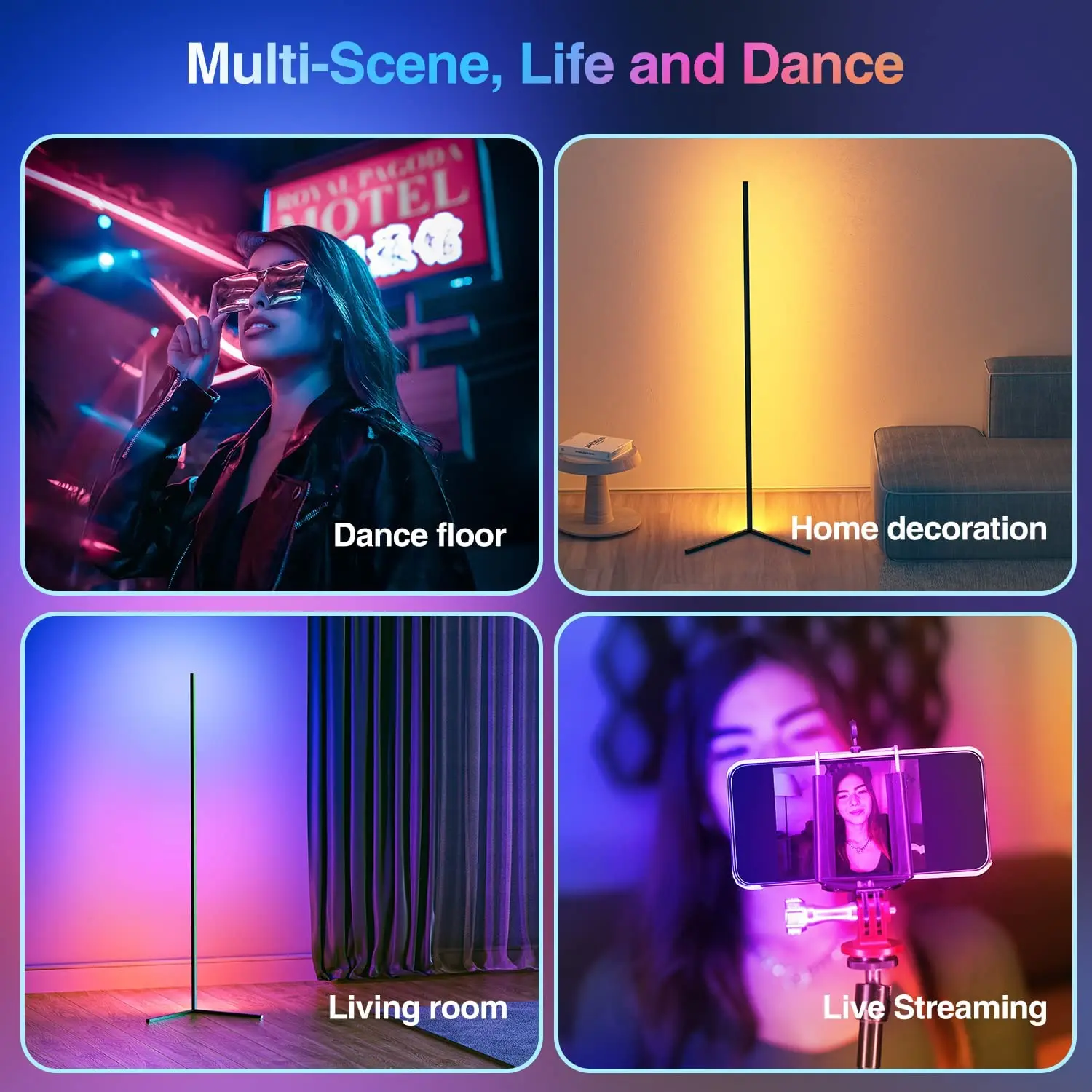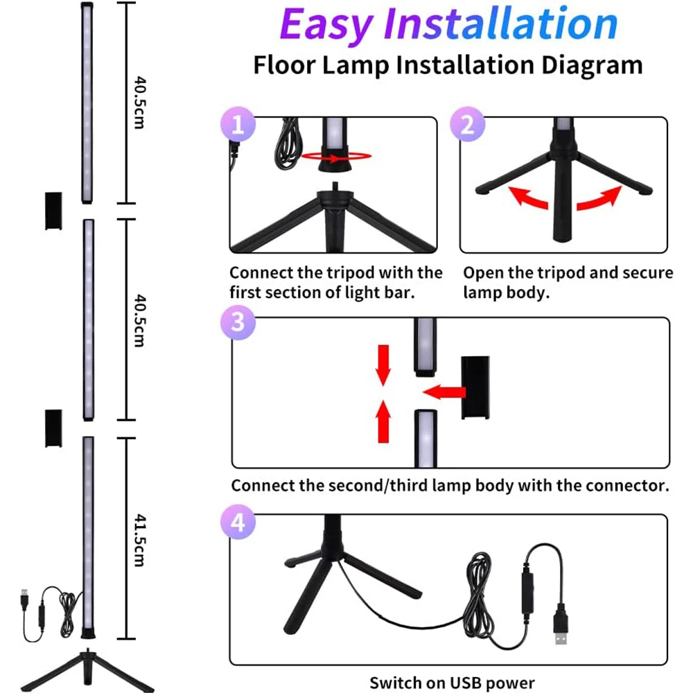 Test et avis sur le Tuya-Lampadaire d’angle Bluetooth sur pied avec trépied, lumière d’ambiance LED RVB, chambre à coucher à intensité variable, chevet, salon de luxe, décoration d’intérieur, 120cm